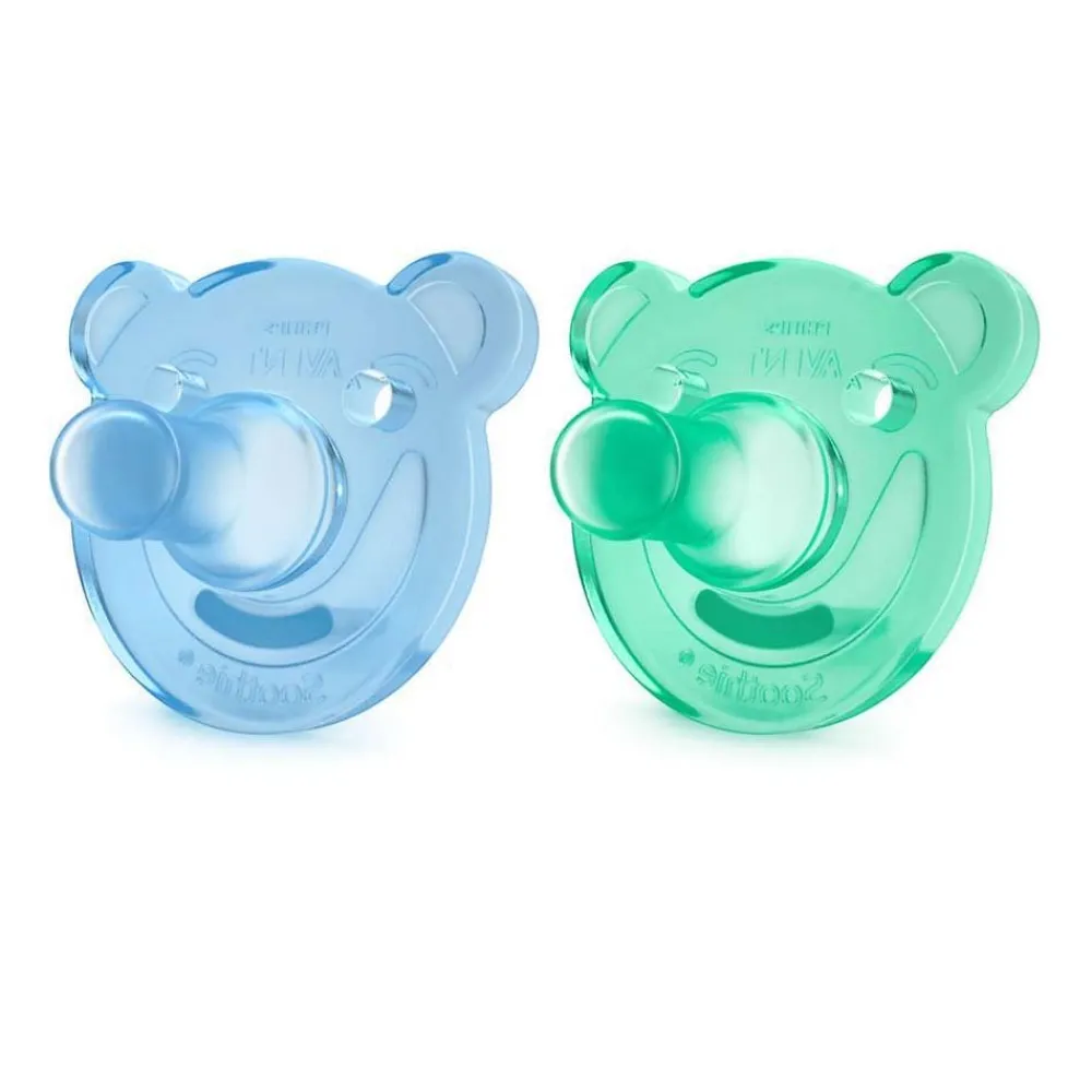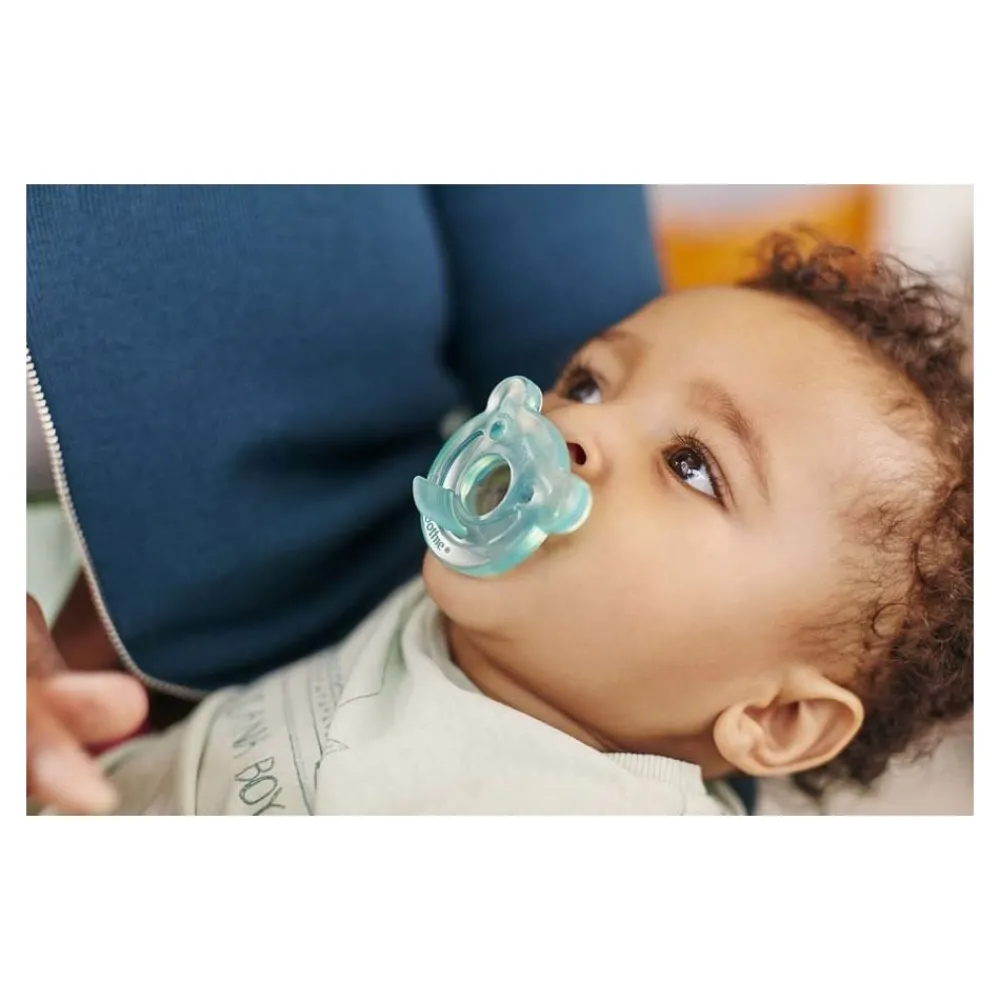 Med Avent Soothie Shapes-smokken kan du knytte bånd til babyen, siden det unike designet i et stykke passer til fingeren din. Soothie Shapes, som er laget av medisinsk silikon er enkel å rengjøre.
