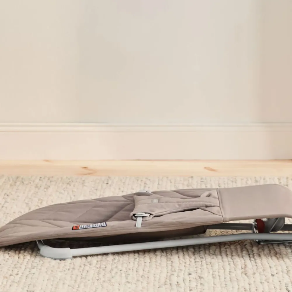 Det komfortable stoffsetet er laget av supermykt vattert bomull. Samtidig som barnet får en morsom gyngestund, trenes motorikken og balansen på en naturlig måte. Den første tiden i barnets liv kan du vugge barnet til ro ved å gynge forsiktig på vippestolen med hånden eller foten.