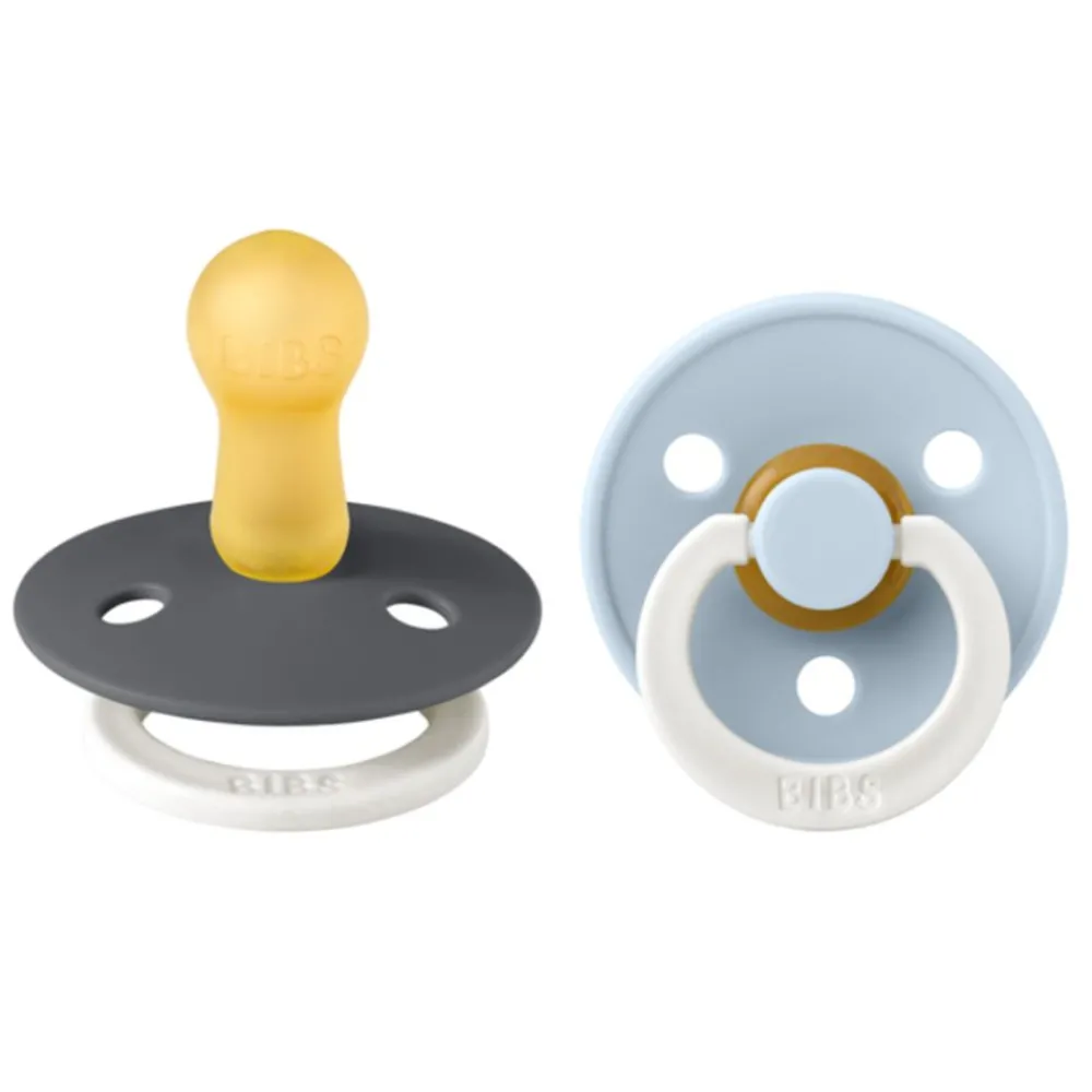Søte BIBS smokker produsert av naturgummilatex og som lyser i mørket. Brystvorten er utstyrt med en ventil som slipper ut luft når babyen lukker seg på brystvorten og dermed flater ut brystvorten til å forme seg naturlig etter babyens munnhule. Det runde lettvektsskjoldet vender bort fra den sensitive og sarte huden rundt babyens munn for å sikre minimal kontakt med babyens nese og munn, noe som betyr mindre sjanse for fuktighetsoppbygging fra spytt som kan forårsake utslett og såre flekker.