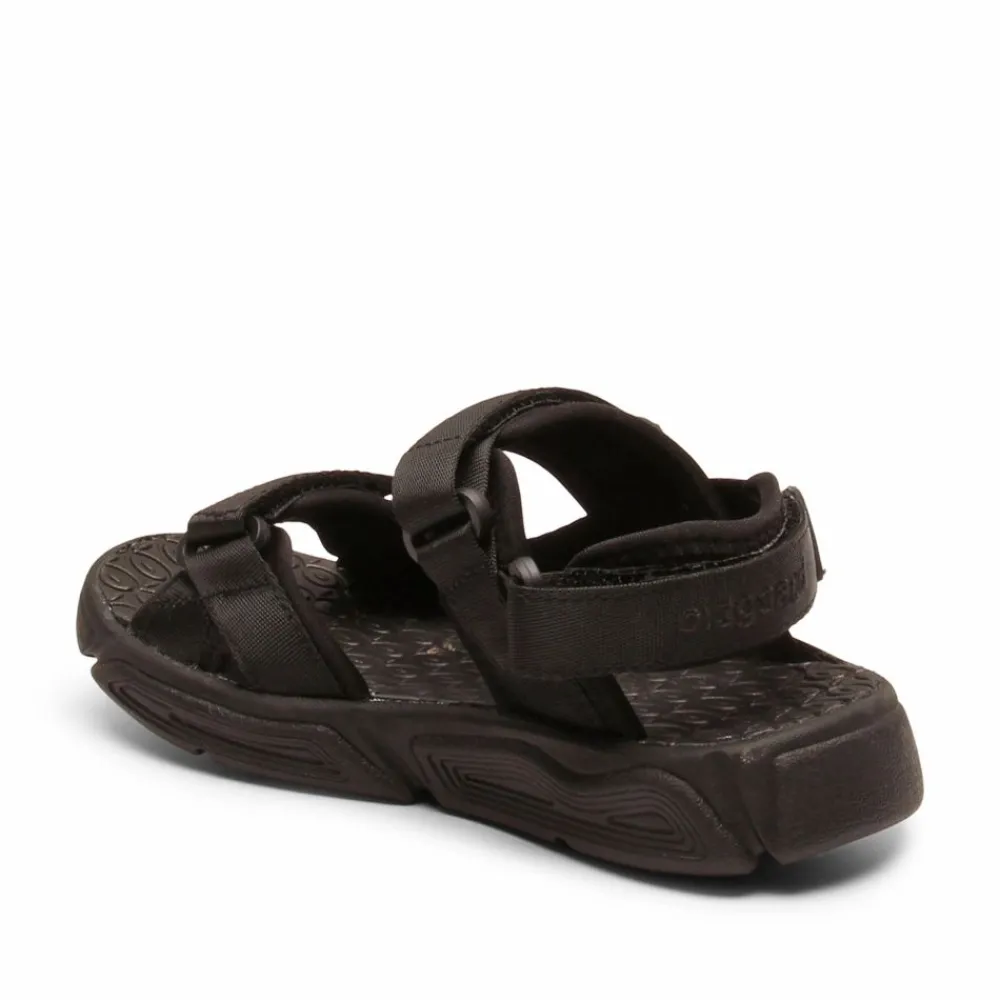 Åpen og lett sandal som gir luft til tærne. Sandalen er laget av pustende materiale med myke og behagelige tekstilstropper. Den justerbare borrelåsen sikrer en naturlig passform og en enkel lukking for barn i alle aldre.