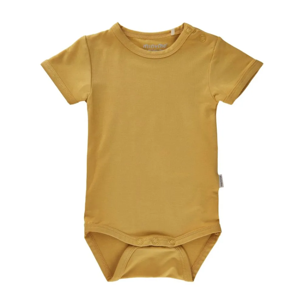 Ensfarget og kortermet body i myk bambusviskose. Enkel å ta på ved hjelp av de praktiske trykkeknappene på venstre skulder og mellom bena. Bodyen er supermyk og behagelig å ha på. Bambus er et naturprodukt som regulerer kroppstemperaturen, er mykt, behagelig og antibakterielt.