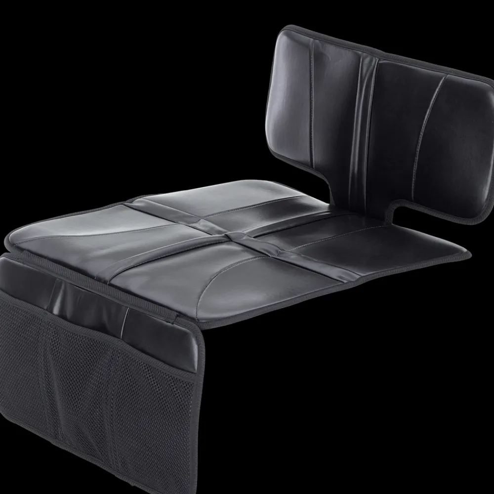 Bilsetebeskyttelsen beskytter mot søl og slitasje. I tillegg har den en praktisk lomme foran for oppbevaring av små leker.