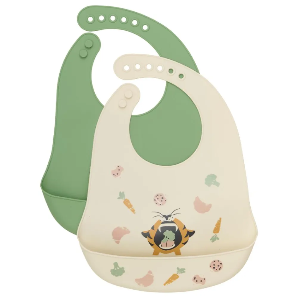 Praktisk og fin smekke laget av mykt og behagelig materiale som er skånsomt mot babyens sensitive hud. Den er utstyrt med en sølelomme som fanger opp mat og drikke som søles under måltider, og holder klærne rene og tørre. Smekken er enkel å bruke med justerbare knapper i nakken som sikrer en perfekt passform for både baby og barn. Den er lett å ta av og på, og kan enkelt rengjøres enten ved å tørke av eller vaskes i maskin.