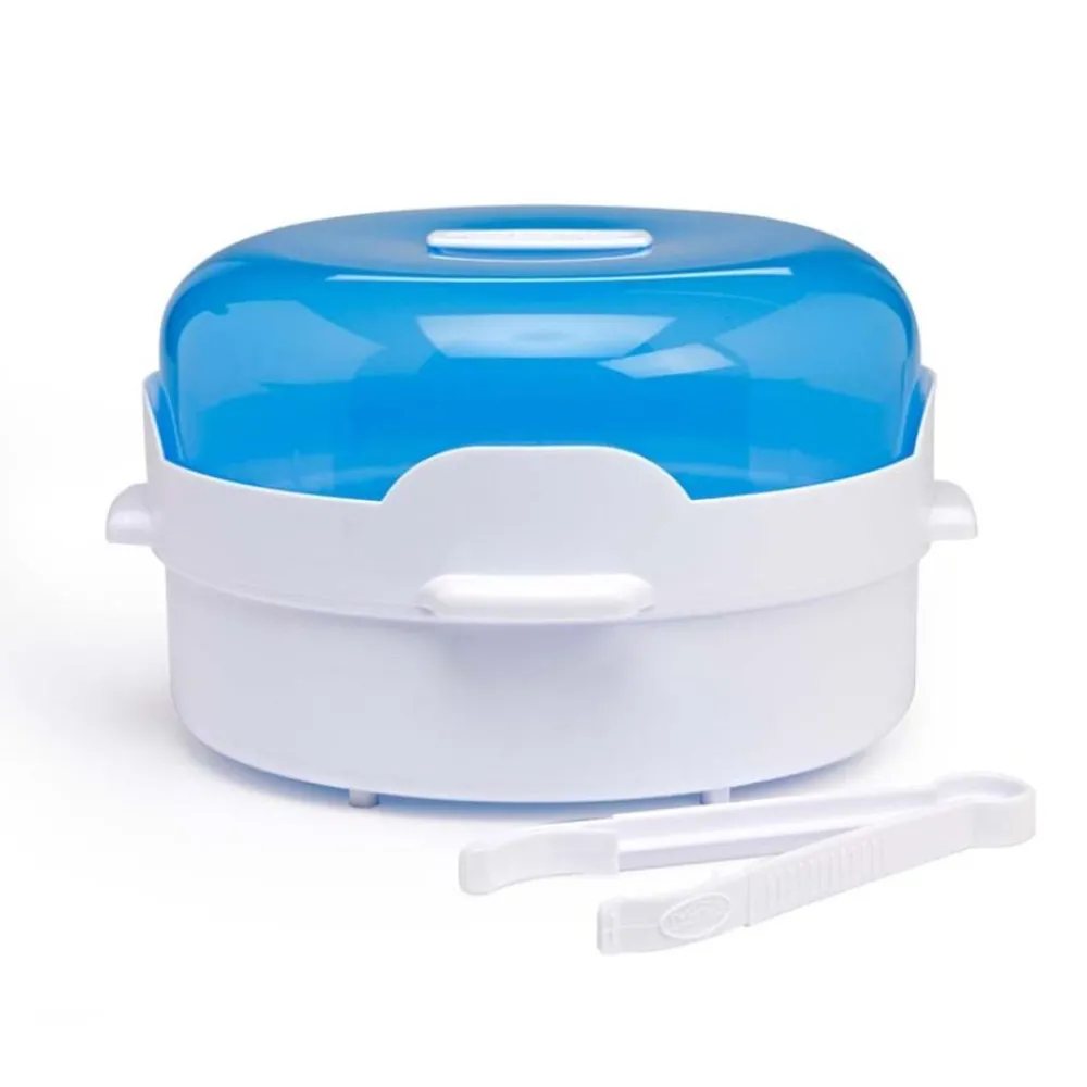 Dr.Brown`s dampsterilisator for mikrobølgeovn kan sterilisere fire standard- eller wide-neck flasker fra Dr.Brown samtidig. Dampen dreper effektivt alle vanlige husholdningsbakterier og sterilisatoren kan brukes på flasker, deler, flaskesmokker, smokker, tutekopper eller flasker.