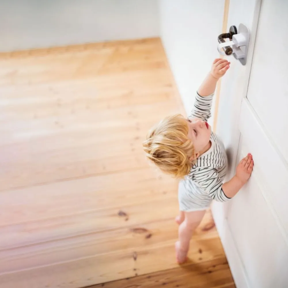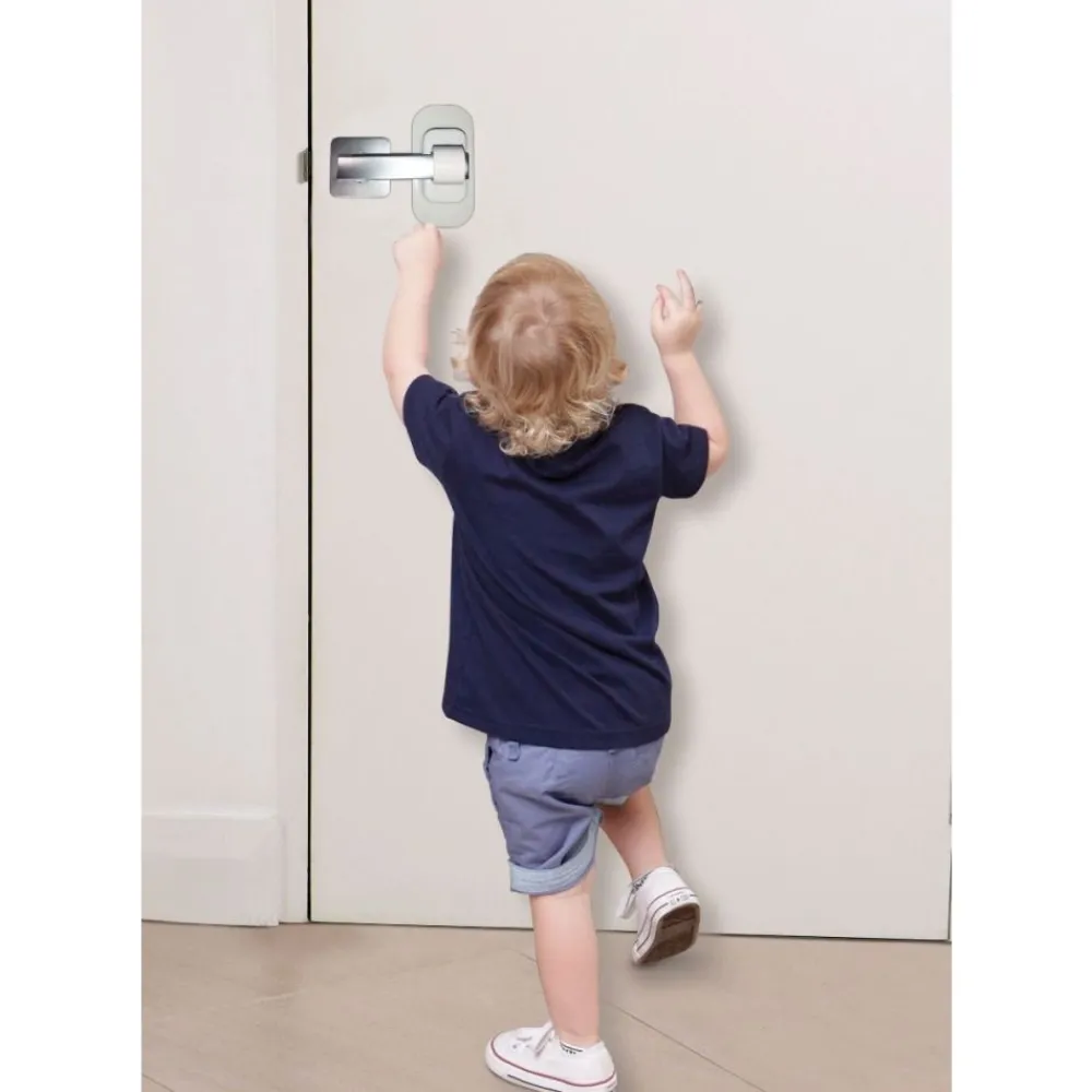 Dreambaby® selvklebende dørlås hjelper til med å forhindre at barn får tilgang til potensielt farlige områder som vaskerom, garasjer og andre rom. Låsen kan enkelt kobles inn eller ut uten behov for nøkkel.