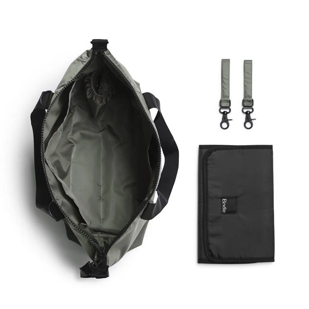 En myk og polstret stellematte er inkludert og lommer utpekt for bleier, vått vev, nøkler, mobiltelefon og mer