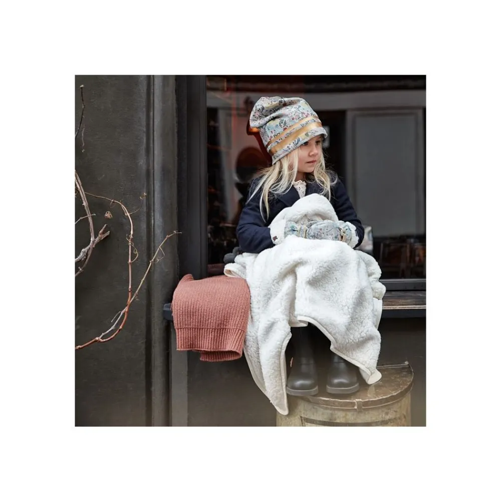 Elodie strikkede ullteppe er en myk blanding av ull og bomull som holder den lille varm selv på de kaldeste vinterdagene. Materialene gjør stoffet pustende og irriterer ikke selv den mest sensitive huden.
