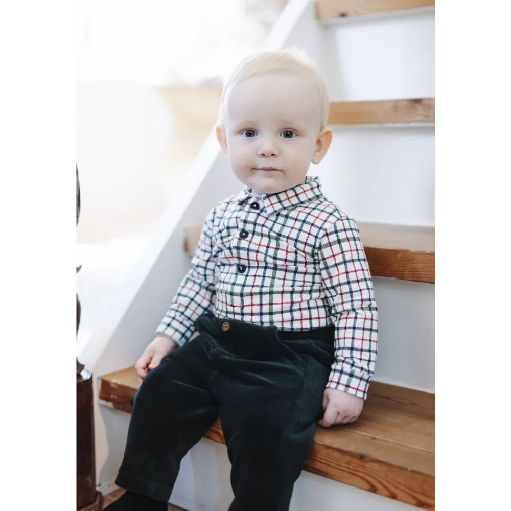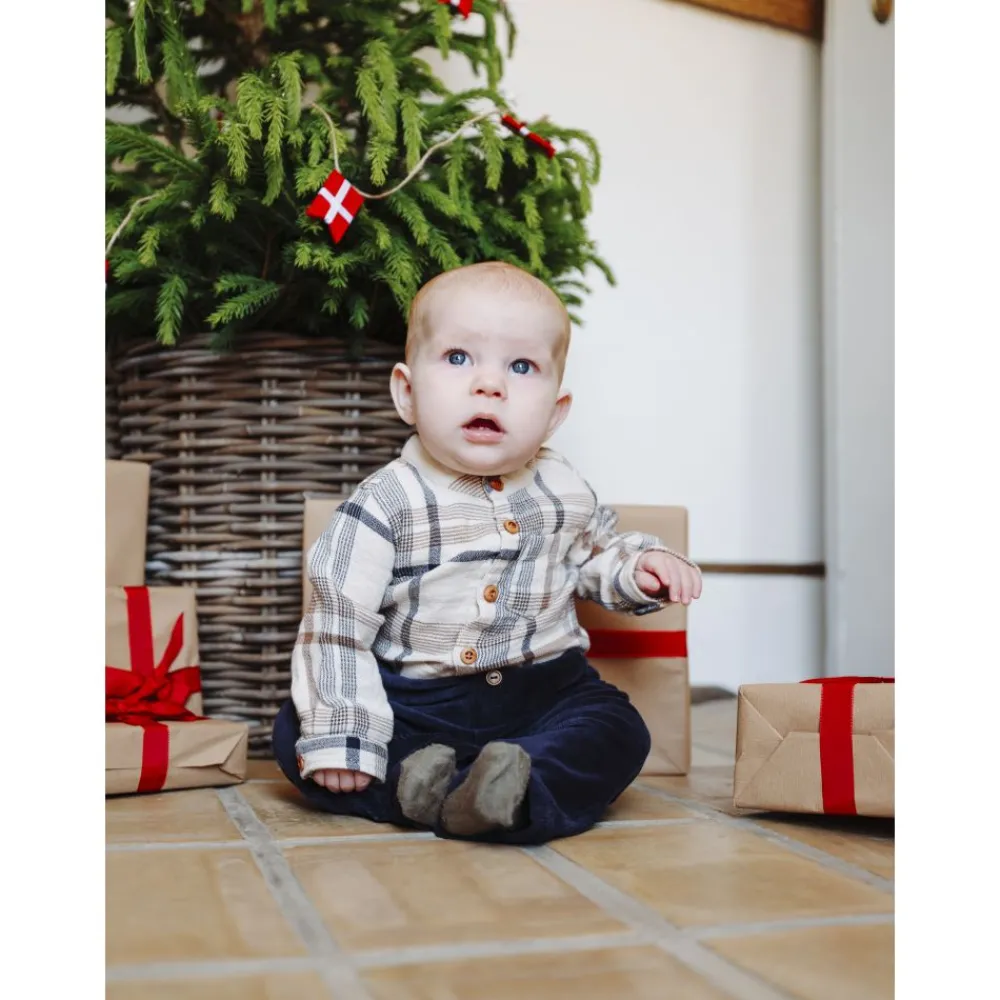 Klassisk og behagelig bukse i myk kordfløyel fra Hust & Claire. Buksen har en elastisk midje for god passform, lommer foran og to dekorative knapper i livet. Den dype marineblå fargen gjør den enkel å kombinere med både hverdagstøy og penere antrekk.