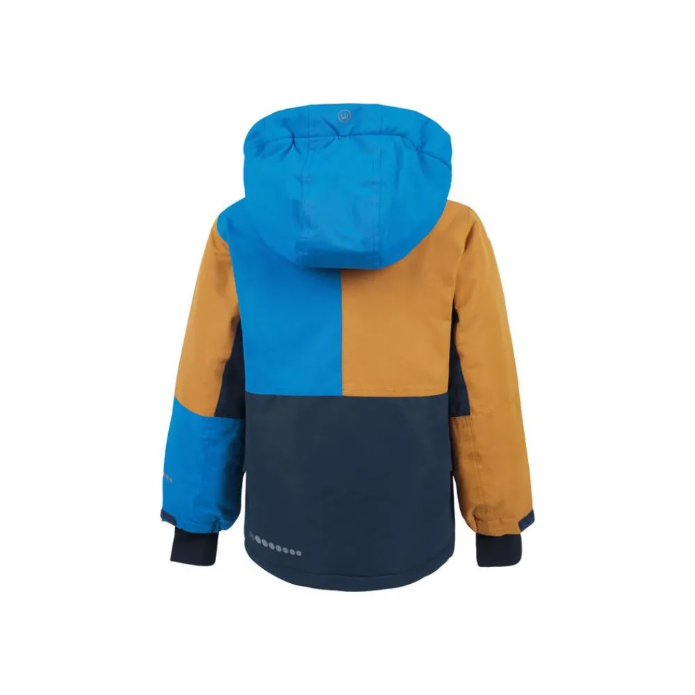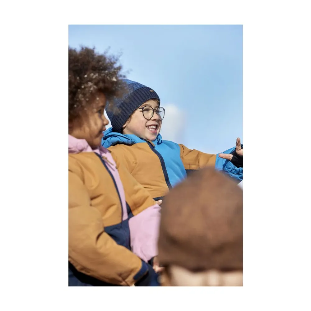Varm skijakke i slitesterkt materiale fra MINYMO. Materialet er pustende, vindtett og vanntett, slik at barnet ditt kan være ute i regn, snø og vind uten å bli kald og våt. Jakken har snøklaff på innsiden, som lukker tett rundt barnets hofte og hindrer snø og vind i å krype opp under jakken og inn i skibuksa.