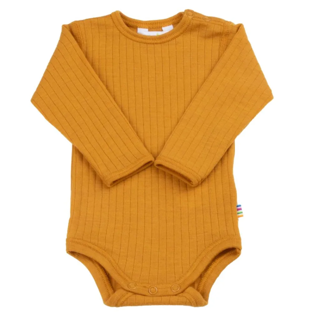 Langermet body med trykkknapper på den ene skulderen og mellom bena. Virkelig en myk, stretchy og lett ullkvalitet med vertikalt ribbemønster. Strekkbarheten i kvaliteten gjør den behagelig å bruke.