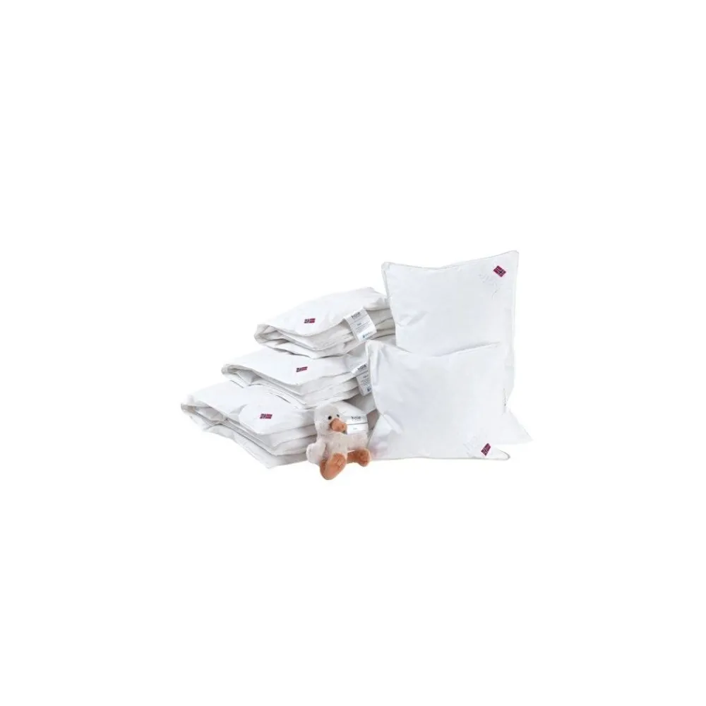 En god og varm dunpute til barn. Dun er et naturmateriale og har unike pustende og varmeisolerende egenskaper. Produktene er fylt med ekstra ren 90% moskusand dun, med et trekk i mykt og ekstra fint 60 garn.