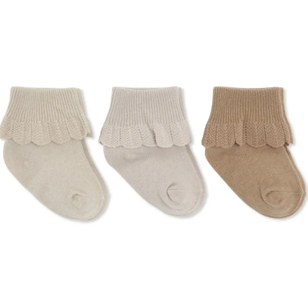 Disse herlige sokkene er laget av nydelig økologisk bomull og kommer i en pakke med tre par. Sokkene har fine farger og søte detaljer.