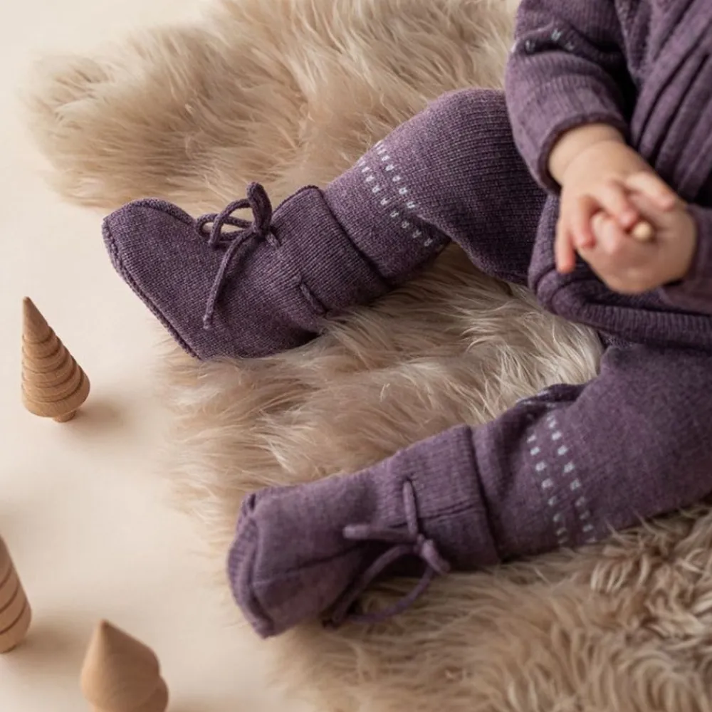Myke babytøfler med knyting er den perfekte løsningen for å holde babyens føtter varme og komfortable. Disse tøflene er spesielt designet for babyer og er fine å ha på når en skal på trilletur, biltur eller sitte i bæresele.