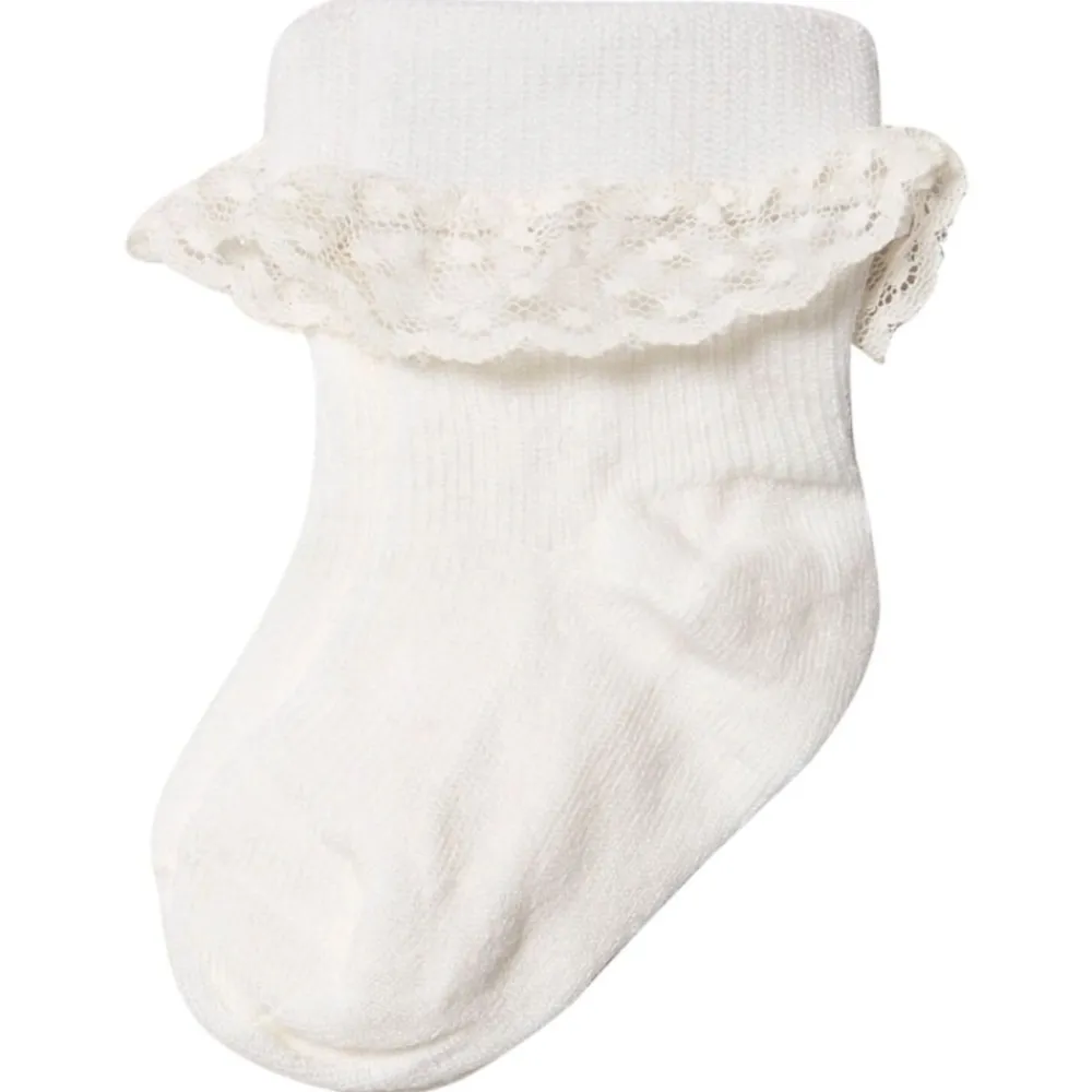 Supersøte sokker i merinoull med blondekant. Lillelam benytter utelukkende 100% merinoull av beste kvalitet.