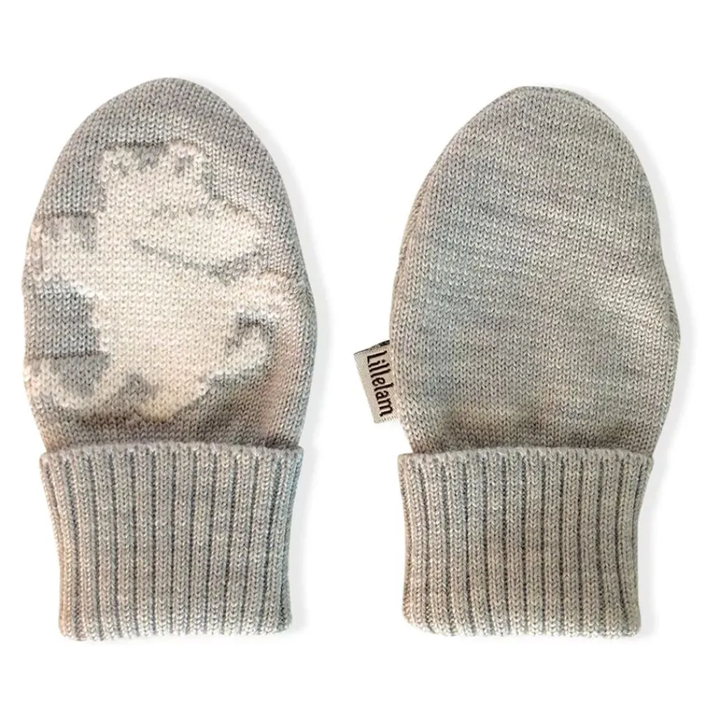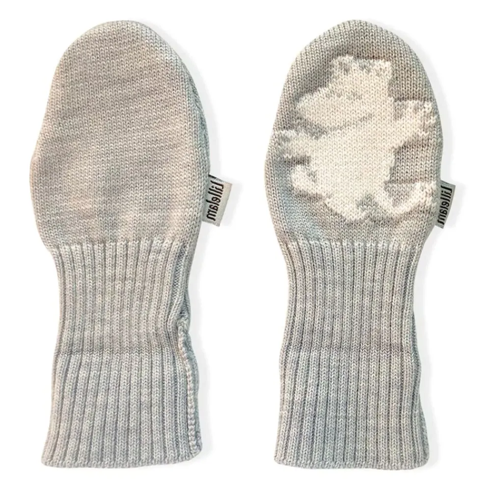 Nyhet! Moomin by Lillelam – en eksklusiv kolleksjon i samarbeid med Mummidalen! Votter Mummi har Mummitrollet er strikket inn i fronten, og holder små fingre varme selv om de blir våte!