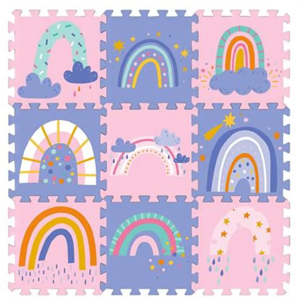 Skumgulvet med regnbuer er et eventyrlig sted for barn å utforske og drømme seg vekk. Med sine myke teksturer og vakre farger skaper det en stemning av fantasi og lek. Barna kan hoppe, leke og skape deres egne eventyr. Det er det perfekte stedet for barn å la deres kreativitet blomstre.