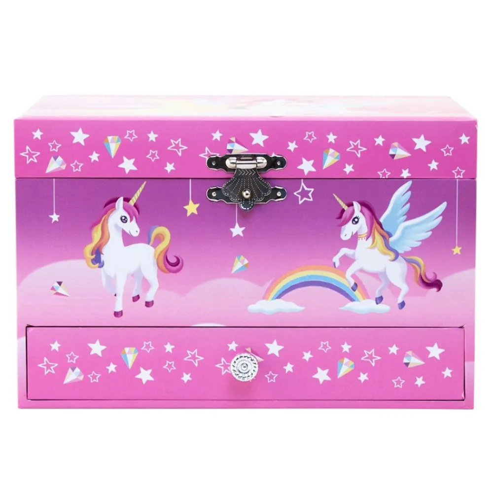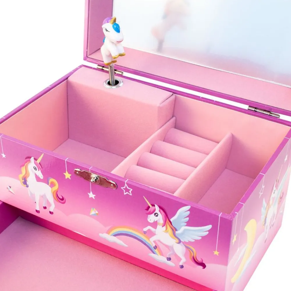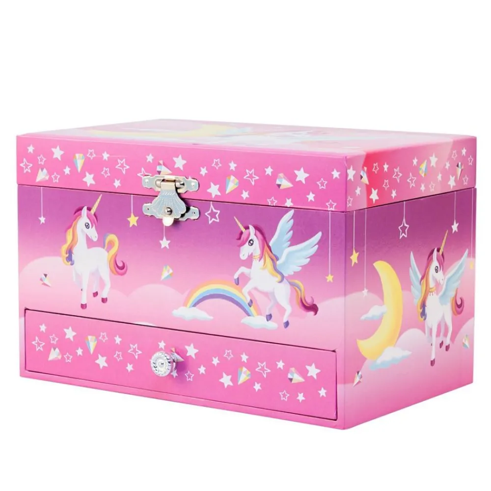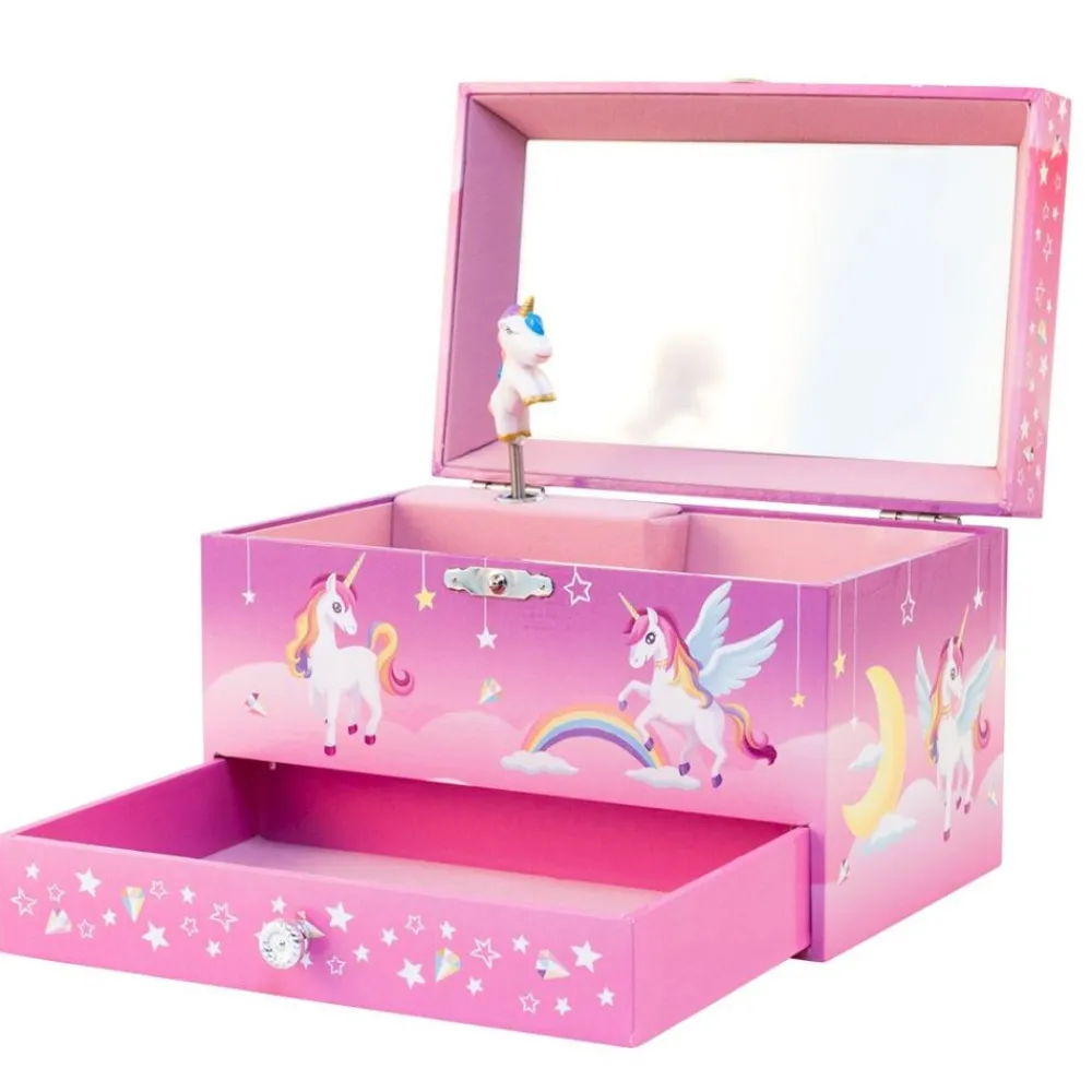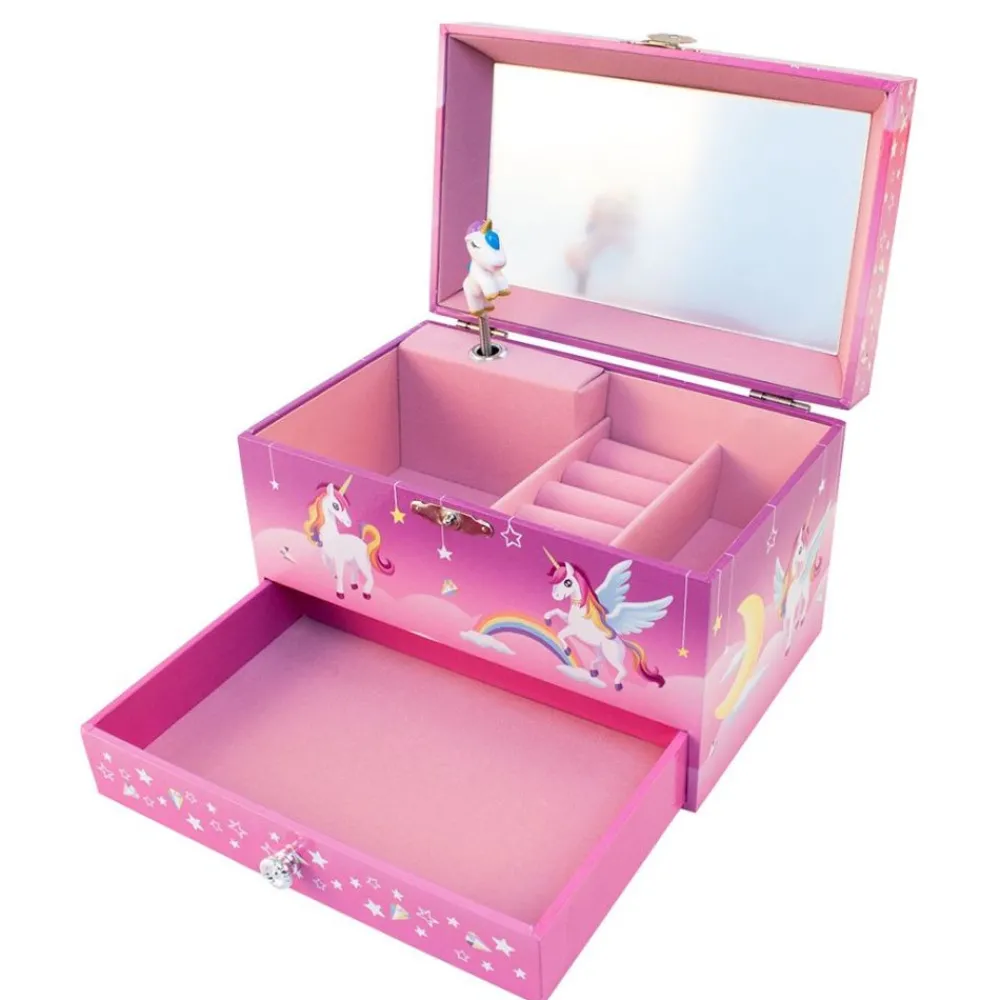 Ta vare på smykkene med det sjarmerende smykkeskrinet fra Magni. Smykkeskrinet er ikke bare et praktisk oppbevaringssted, men også en magisk portal til en verden av fantasi. Åpne skrinet og la magien utfolde seg! En liten enhjørning danser rundt til en nydelig melodi, og skaper en atmosfære av ren fortryllelse.