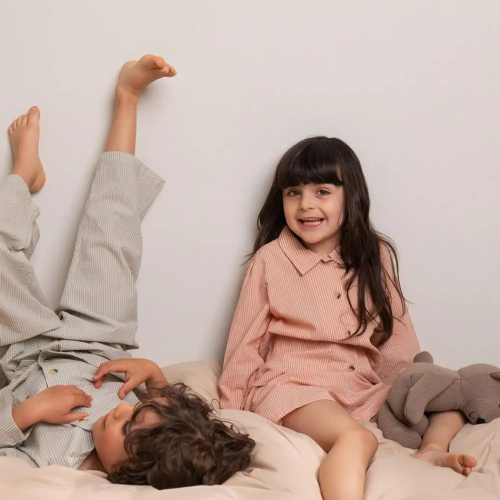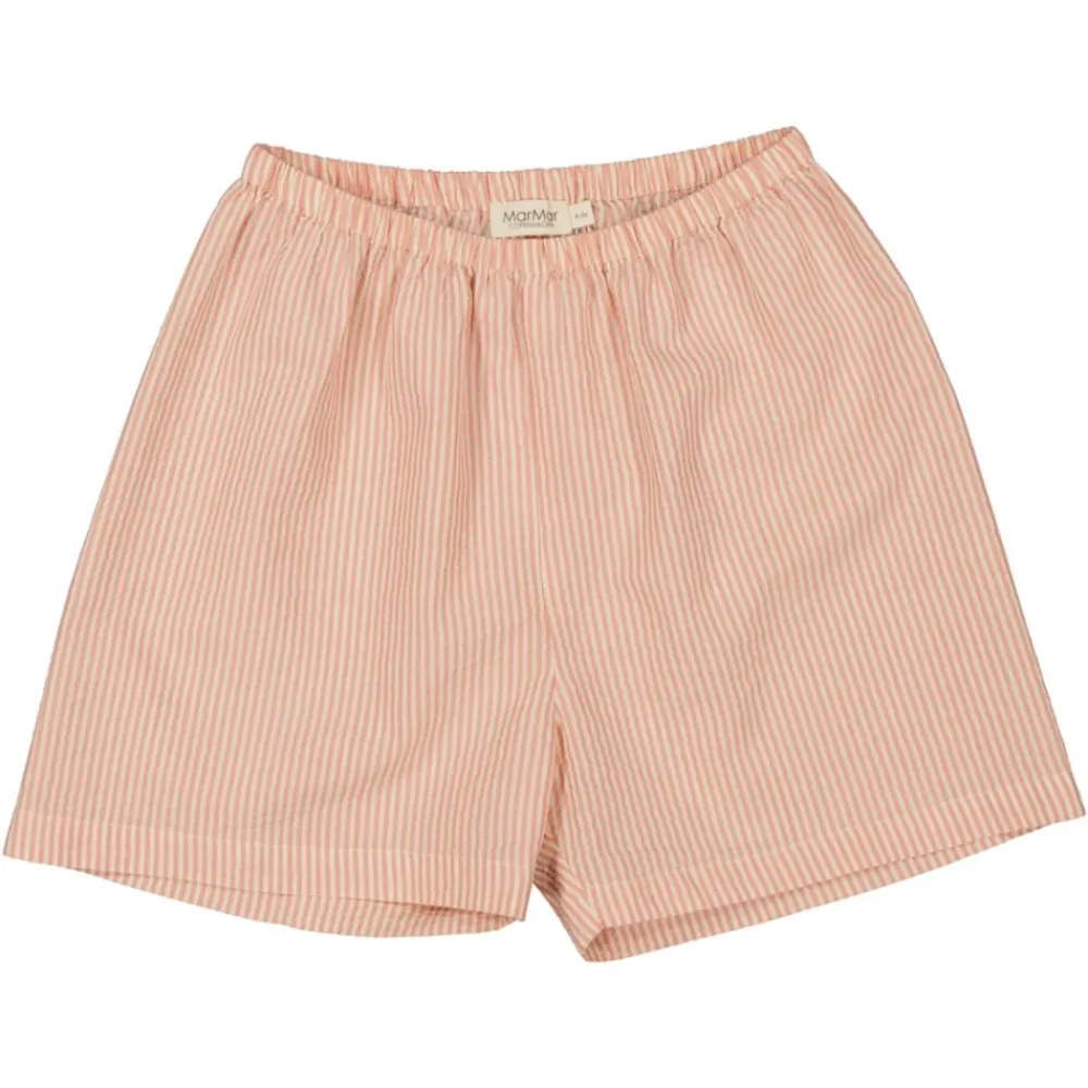Opplev luksusen av komfort i MarMar’s pysjamasshorts. Den løse passformen gir bevegelsesfrihet samtidig som man kan nyte den elegante stilen. Den lette, myke og pustende bomullskvaliteten er vevd i delikate striper, og 100% naturlig materiale.