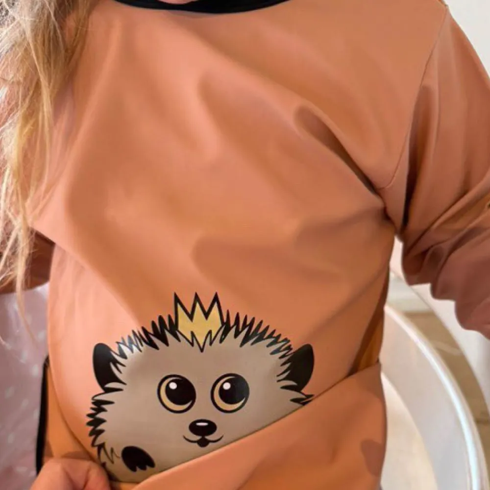 Denne populære langermede smekken fra Milla&Max med høy hals forhindrer søl fra å trekke ned i klærne, mens strikken rundt håndleddene stopper maten fra å snike seg inn. Den store oppsamlingslommen med vannavstøtende innside fanger opp matrester og er lett å skylle ren. Laget av mykt, PU-belagt polyester, tørker den raskt og er enkel å justere med borrelås. Perfekt for små utforskere ved matbordet.