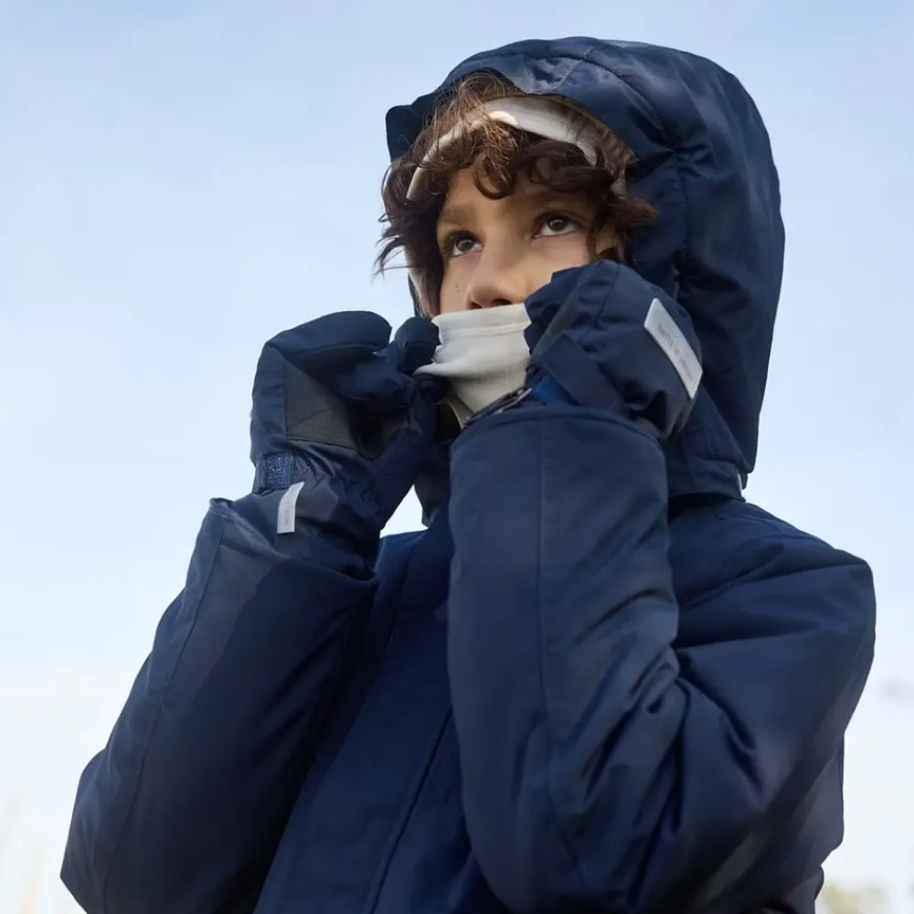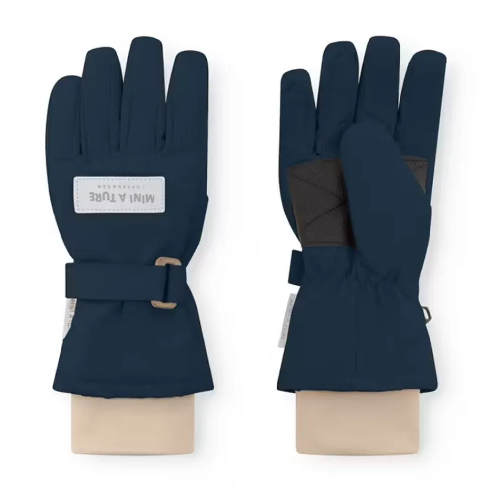 Klassiske MINI A TURE-hansker laget av resirkulert nylon med Thinsulate®-fôr. Vind- og vanntette, pustende og varme nok for en veldig kald vinter. Hanskene har strikk rundt håndleddet samt øverst som holder regn og snø ute. Borrelåsstroppen kan festes til vårt klassiske yttertøy slik at hanskene ikke blir borte.