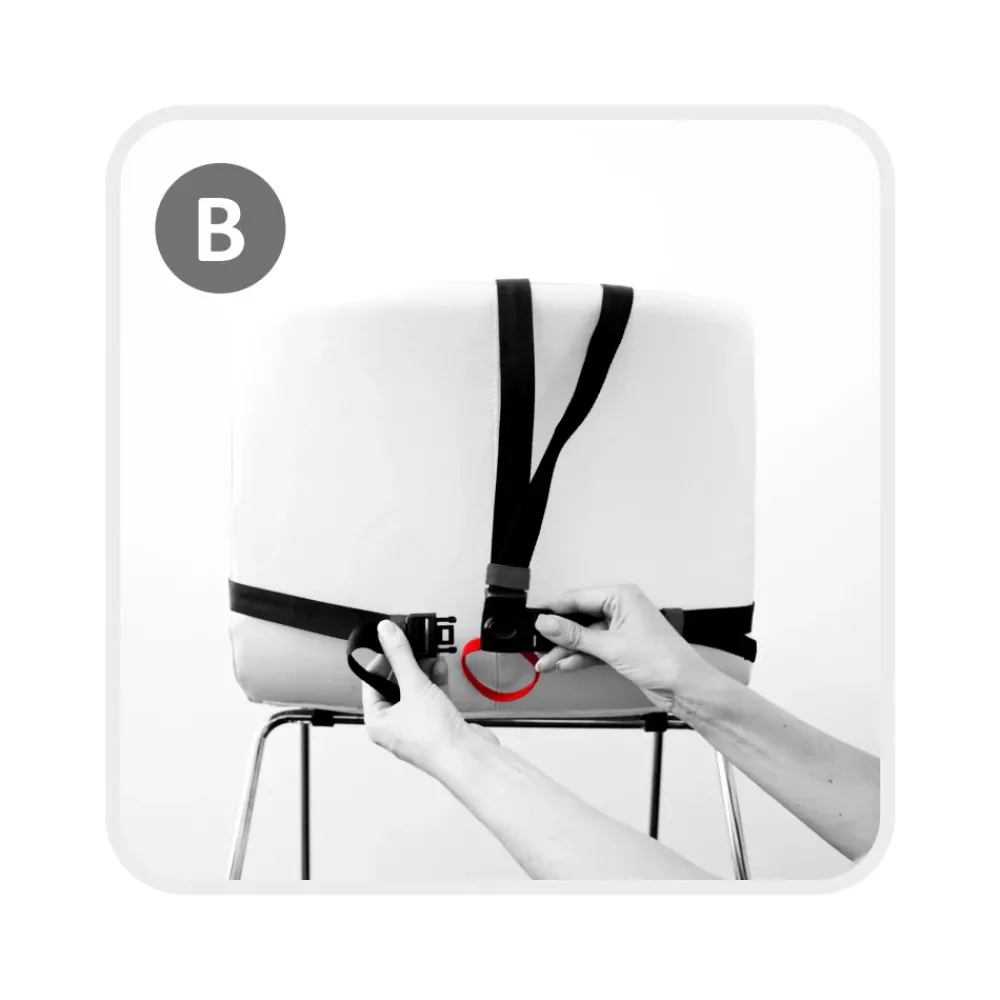 Med Minichair kan en vanlig stol forvandles til en barnestol på et øyeblikk. Det kompakte designet gjør Minichair enkel å ta med enten du skal på cafe eller på ferie.