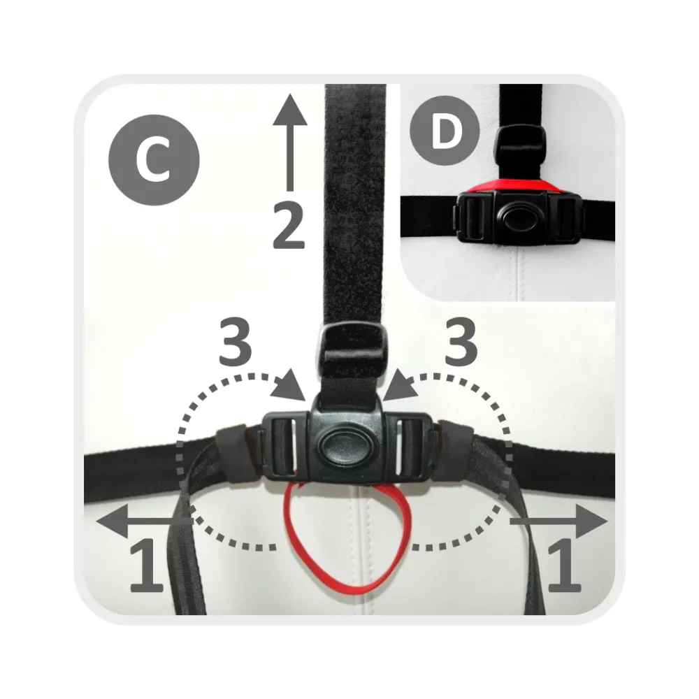 Et unikt patentert festedesign kombinert med et sikkerhetssystem, spenne og en ekstra sikkerhetslås gjør Minichair sikker.