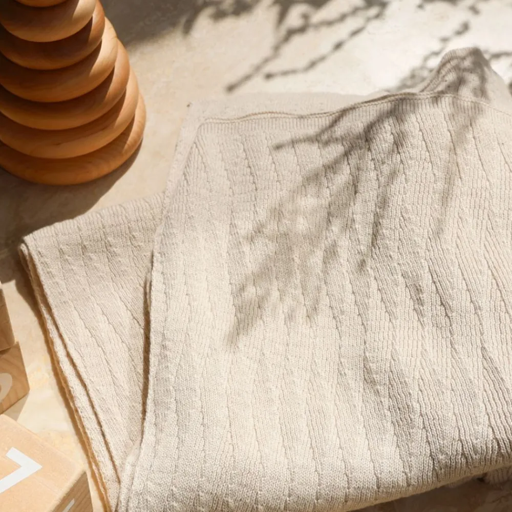 Babyteppe kombinerer økologiske materialer med tidløst håndverk – perfekt for å skape trygghet og varme i vuggen, sengen eller barnevognen. Strikket i et klassisk diamantmønster og laget av 100 % økologisk, GOTS-sertifisert bomull, er teppet fritt for kjemikalier og plantevernmidler – skånsomt både mot babyens hud og miljøet. Dette allsidige teppet er ideelt for å svøpe babyen eller legge til et ekstra lag på trilleturen.
