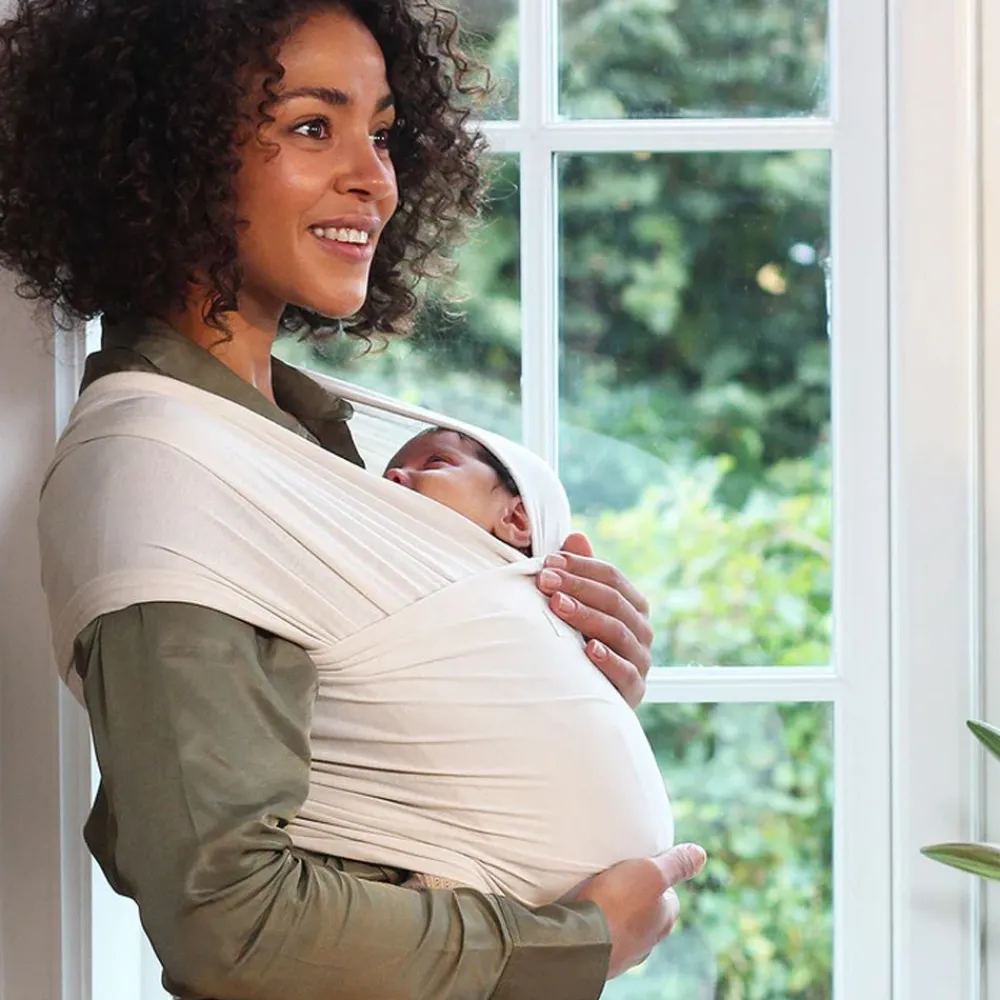 Bæresjal (for nyfødte) – Lett og økologisk. Med dette bæresjalet kan du og din nyfødte ha hudkontakt. Bare de beste bæresjalene har en nydelig balanse mellom stretch og fasthet, så babyen holdes trygt på plass nær huden din, men løs nok til at du enkelt kan puste.