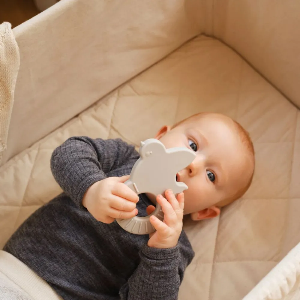 Biteringene fra Over the Moon-kolleksjonen er laget av høykvalitets silikon som er skånsom mot babyens ømme tannkjøtt og gir trygg lindring ved tannutbrudd. Den myke teksturen og de lekne formene gjør biteringene enkle å gripe og utforske – ideell for både sansemotorisk utvikling og lindring.