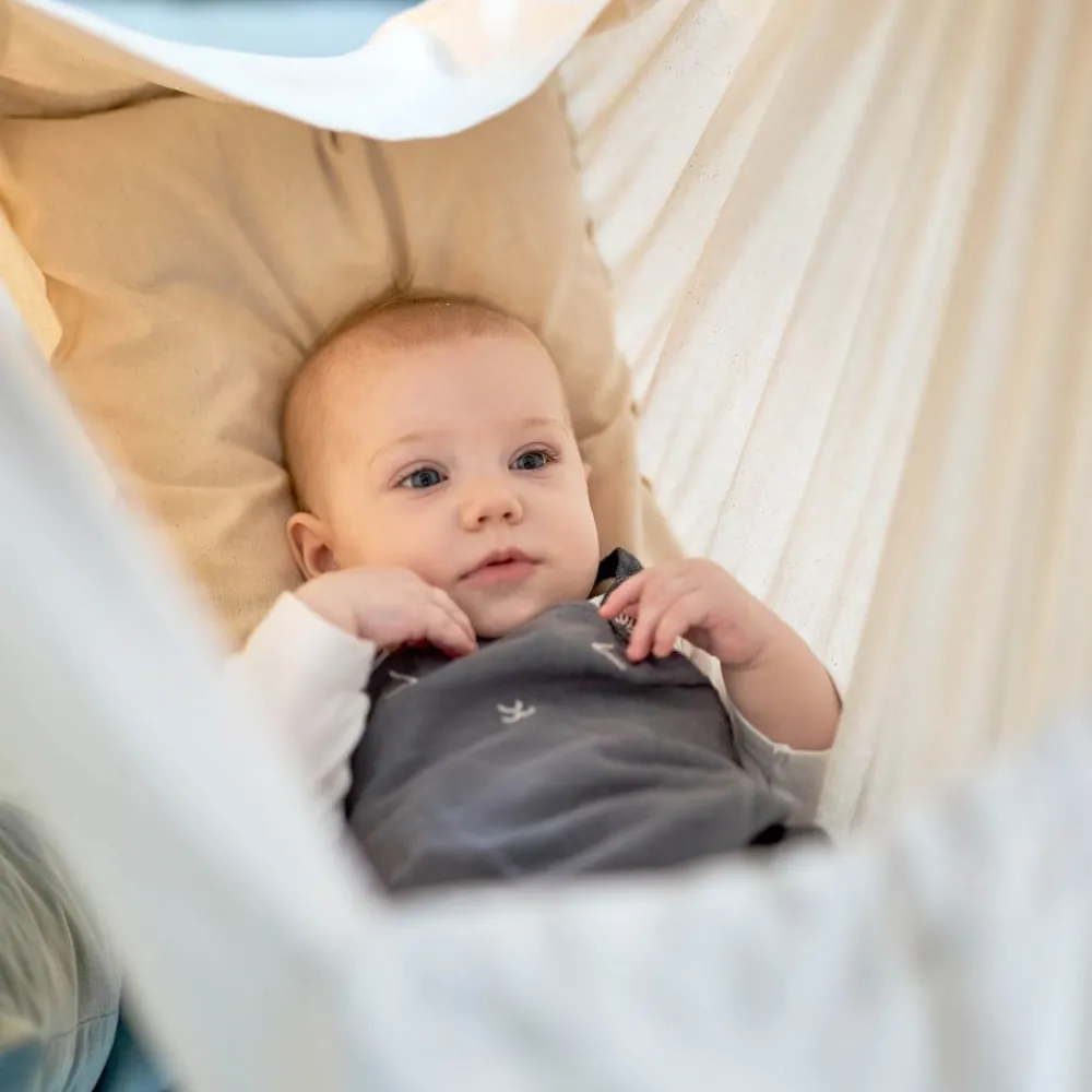 MoonBoon – en økologisk hengevugge som gir babyen din et trygt sted å hvile og sove. Fordi bare det beste er godt nok for babyen din, er babyhengekøyene fra MoonBoon laget av 100 % økologisk bomull og inkluderer en naturlig, hypoallergen madrass laget av kapok.
