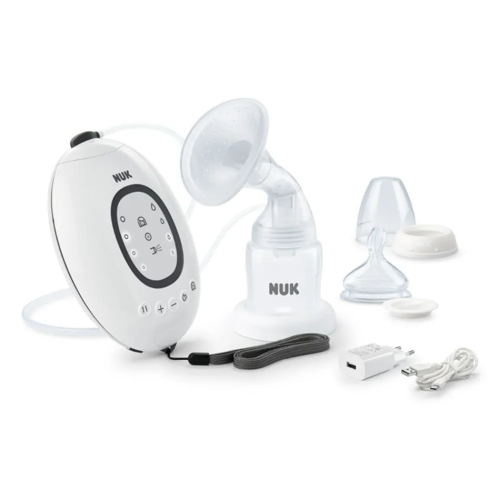NUK First Choice+ Electric Breast Pumper en brystpumpen fra NUK som gir deg mulighet å lagre de innstillingene du foretrekker med en smart minnefunksjon. Velg mellom 16 individuelle innstillinger. Displayet tilpasser seg etter lyset i rommet du befinner deg i slik at du lett kan se hva det viser. Tross at den er kraftfull, er den stillegående.