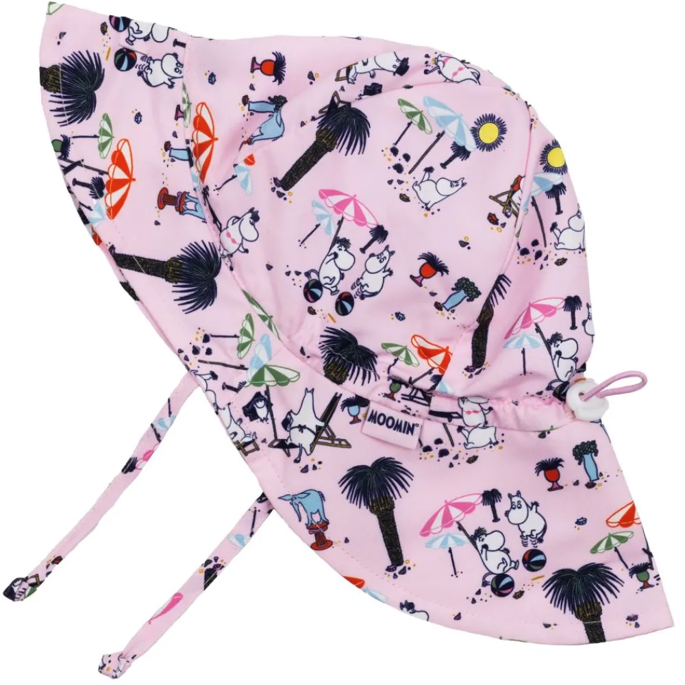 Søt og praktisk solhatt med Mummitrollet-motiv fra Rätt Start. Beskytter barnet mot solen og sitter godt med justerbar passform og knytebånd under haken.