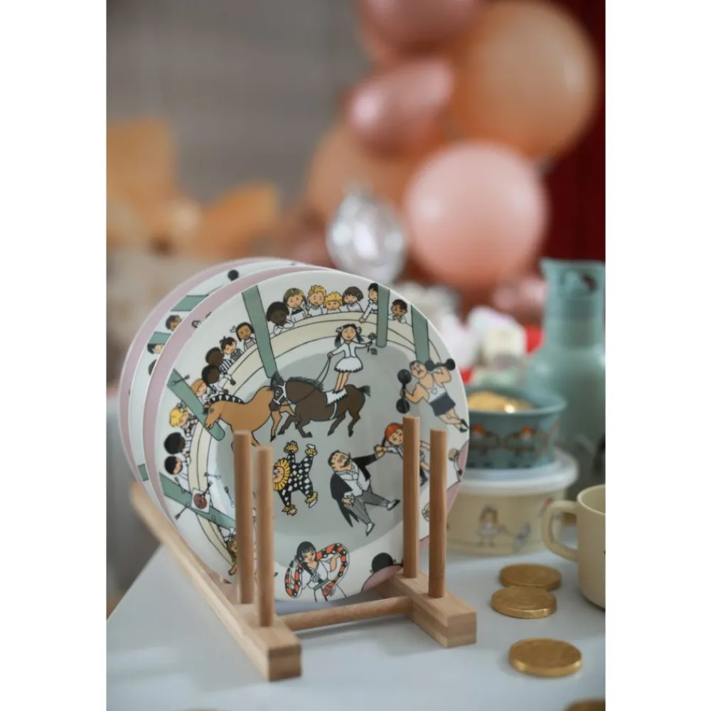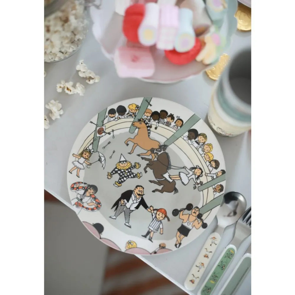 Gjør måltidene enda morsommere med denne fargerike tallerkenen som prydes av det elskede sirkusmotivet fra Pippi Langstrømpe! Pippi, verdens sterkeste og mest eventyrlystne jente, bringer både lek og glede til bordet. Tallerkenen er laget av slitesterkt materiale og passer perfekt til både hverdag og spesielle anledninger for små Pippi-fans.