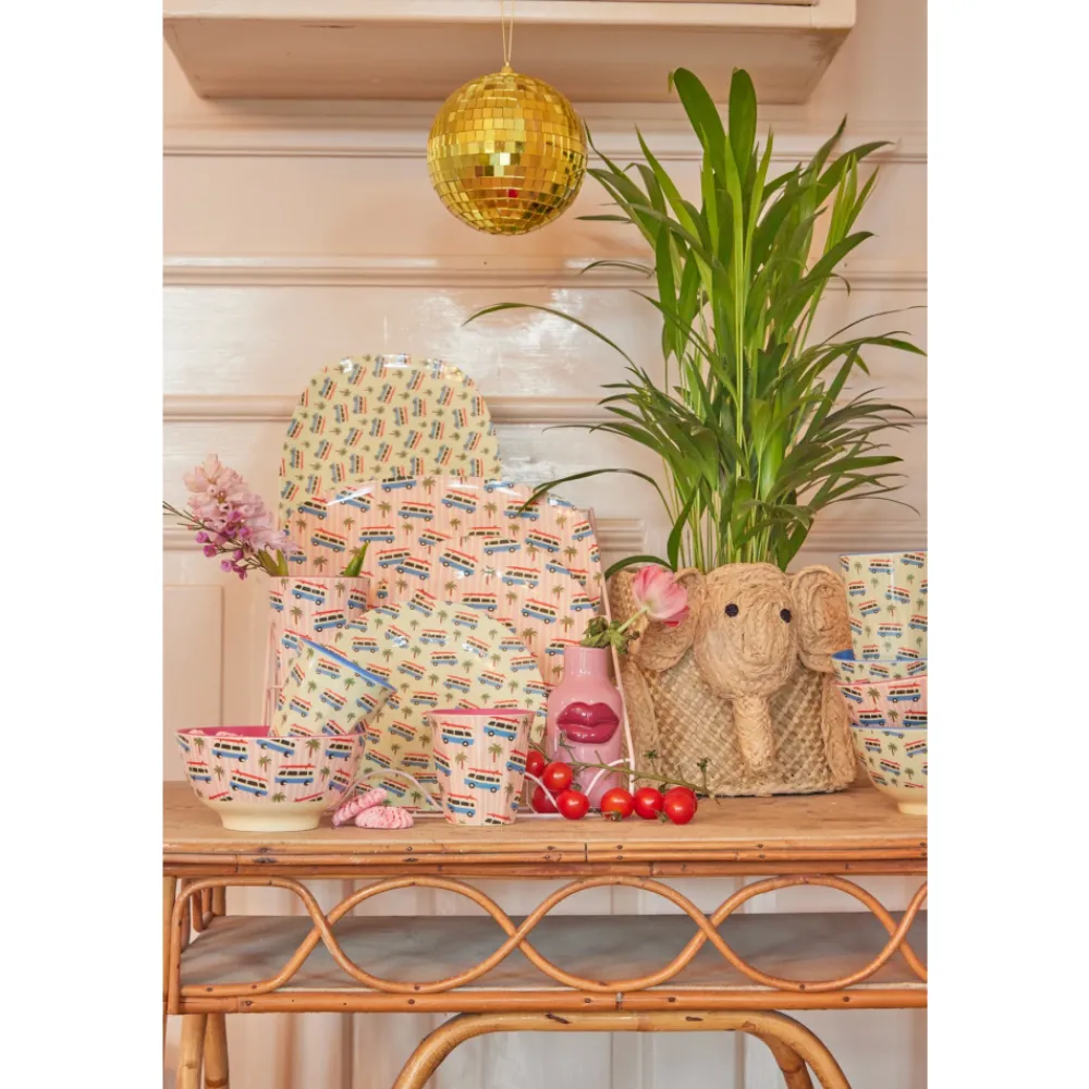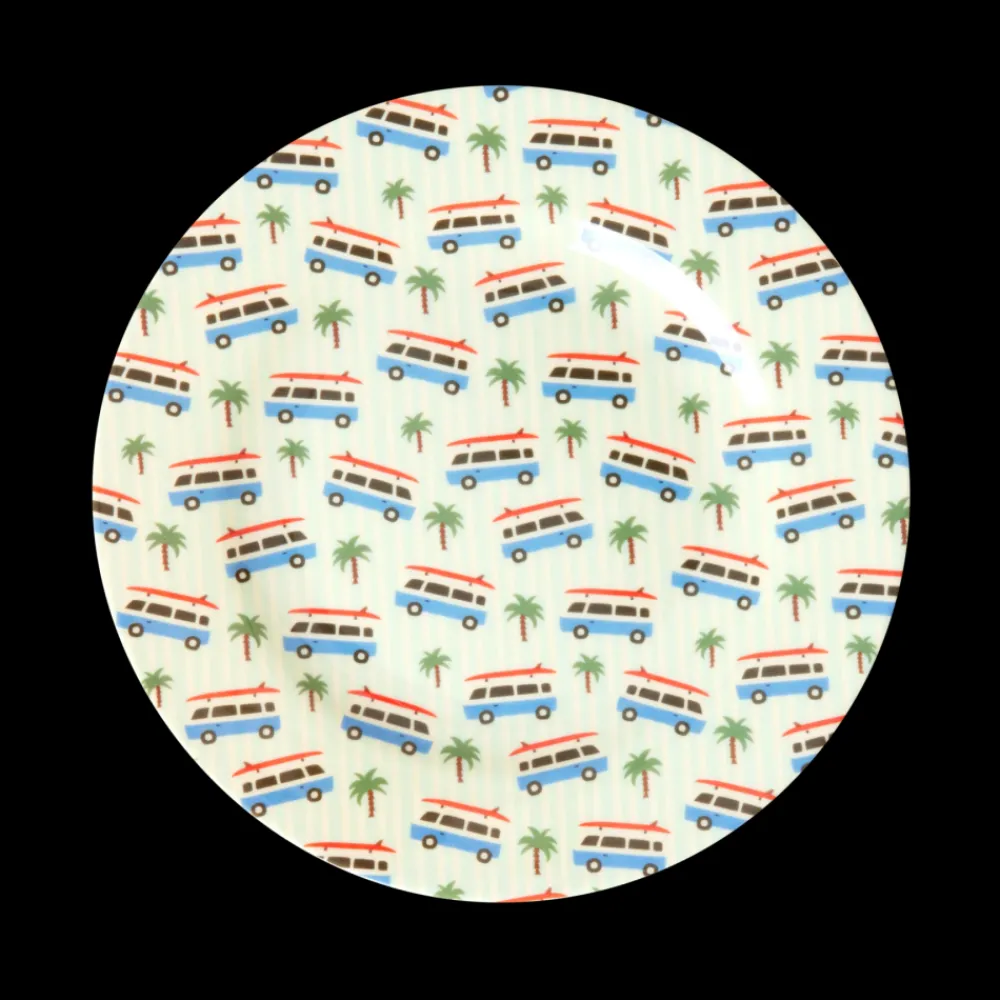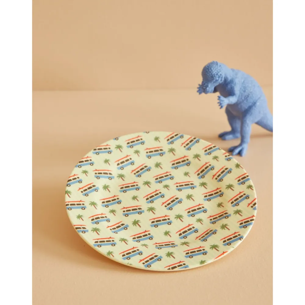 Klassisk, rund melaminasjett med et lekent bilmotiv og palmer på stripet bakgrunn. Designet – Cars Print – kombinerer enkelhet og farger på en måte som passer perfekt til lunsjbordet, pikniken eller andre små måltider.