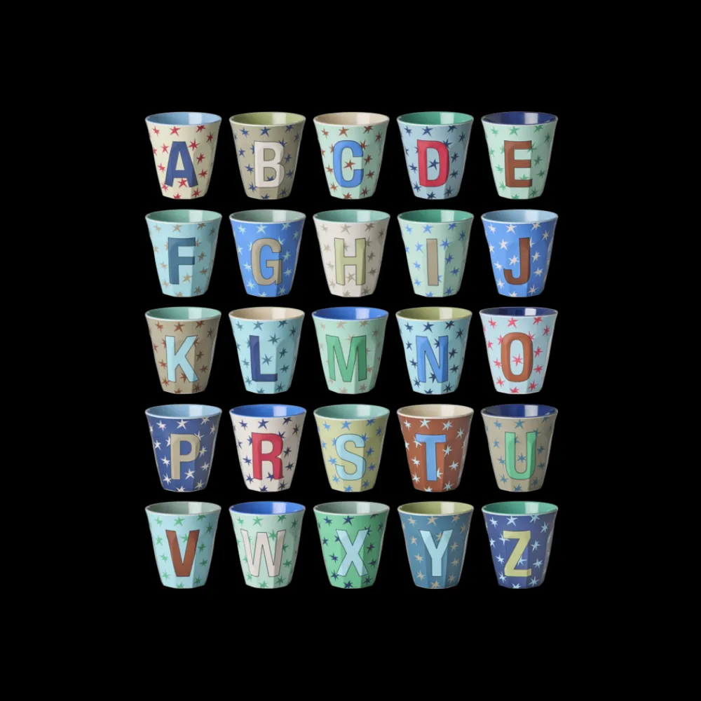 Gi frokostbordet et løft med disse nydelige melaminkoppene fra Rice. De har et delikat stjernemønster i lyse blåtoner og finnes med bokstaver fra A til Z – perfekt for å sette et personlig preg på hverdagen.