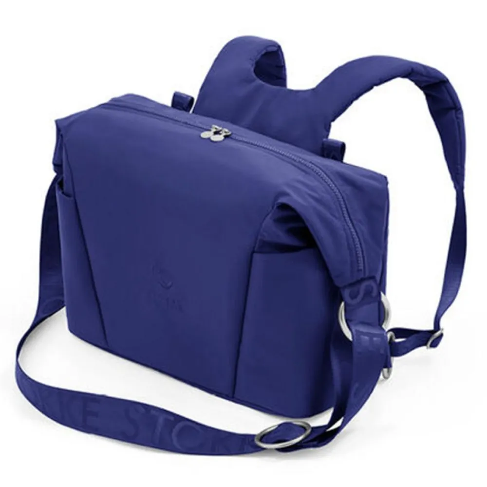 Stokke stelleveske kan festes til barnevognen, brukes som skulderveske eller ryggsekk. Vesken har mange lommer av forskjellig størrelse, blant annet en vanntett sidelomme som er veldig praktiskt. De ekstra myke materialene er UPF 50+, PFC-frie og vannavstøtende så de er lette å tørke av.