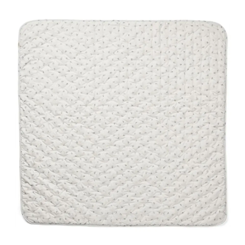 Vattert teppe med avrundede hjørner i deilig økologisk bomull. Teppe kommer i en pose med håndtaksom er en smart funksjon for enkel transport. Dette kan gjøre det enkelt å ta med seg teppet på tur eller oppbevare det når det ikke er i bruk.