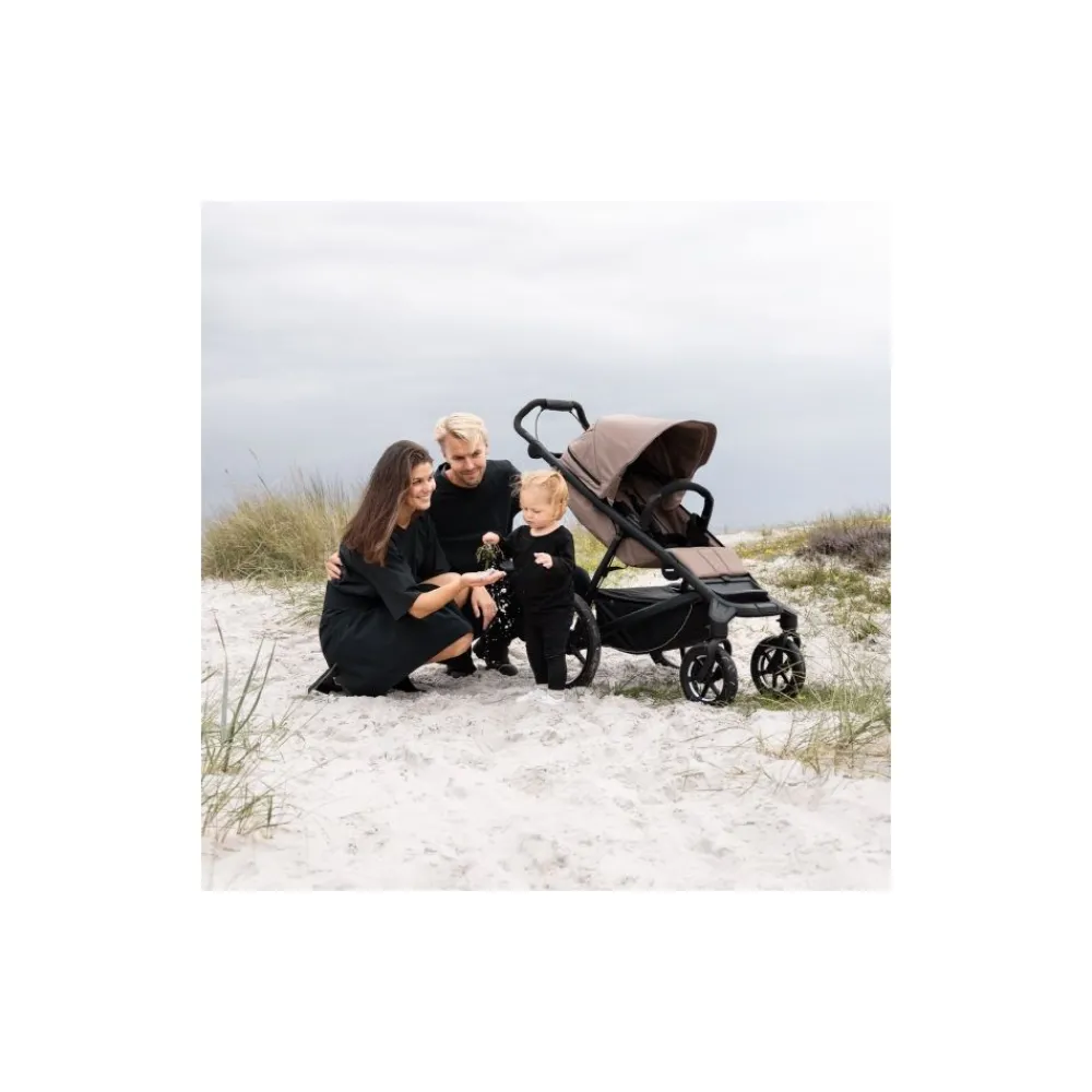 De svingbare forhjulene navigerer elegant gjennom travle gater og låses enkelt når du øker farten. Med bremsen håndtert ved et vrihåndtak, får du optimal hastighetskontroll både på fortau og i variert terreng.