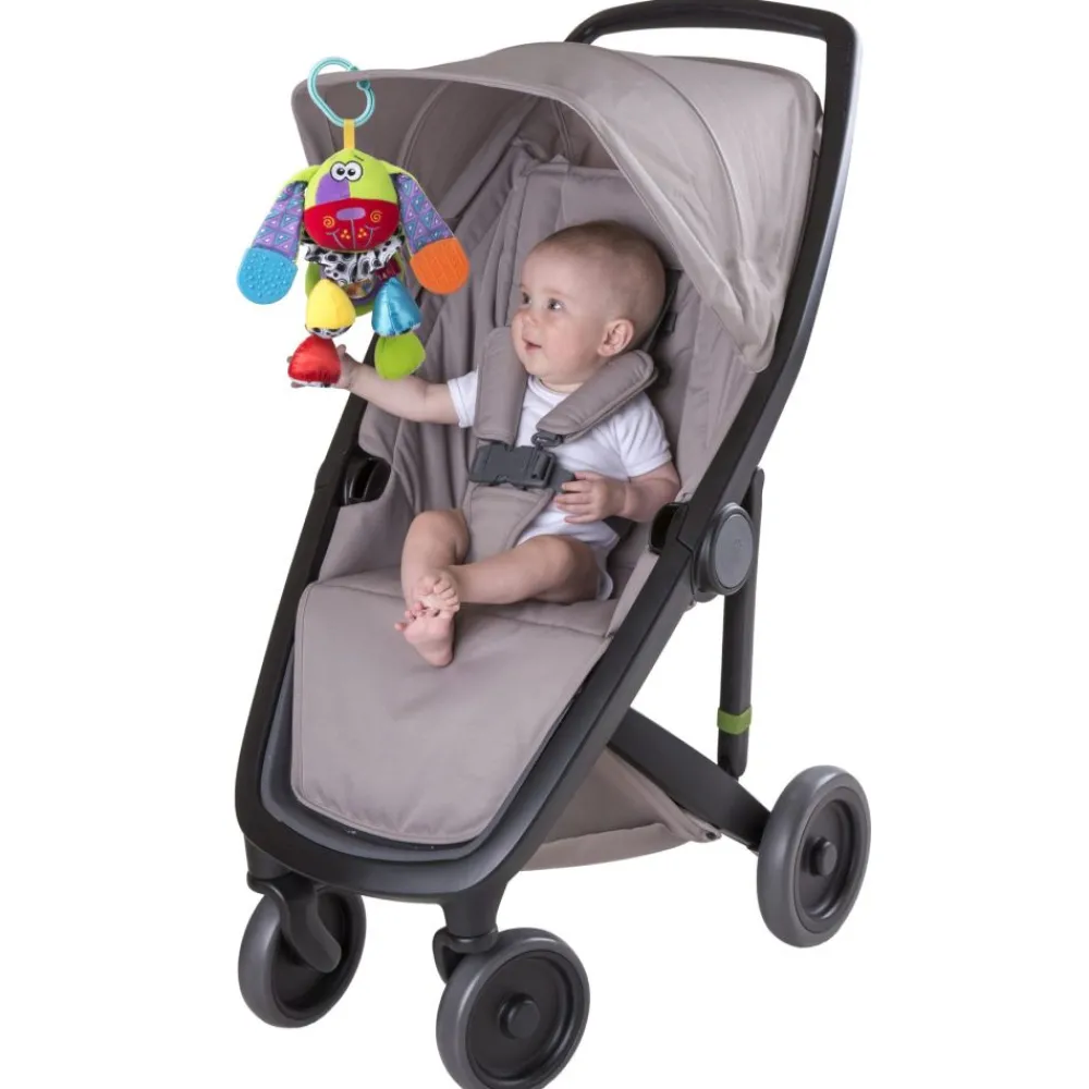 Fin vognleke med en praktisk krok som gjør det enkelt å feste på barnevognen eller bilstolen. Det er designet med muntre farger og fine lyder som vil fange barnets oppmerksomhet og stimulere deres sanser. Med ulike teksturer og former å utforske, vil dette leketøyet holde barnet underholdt og engasjert mens dere er på farten.