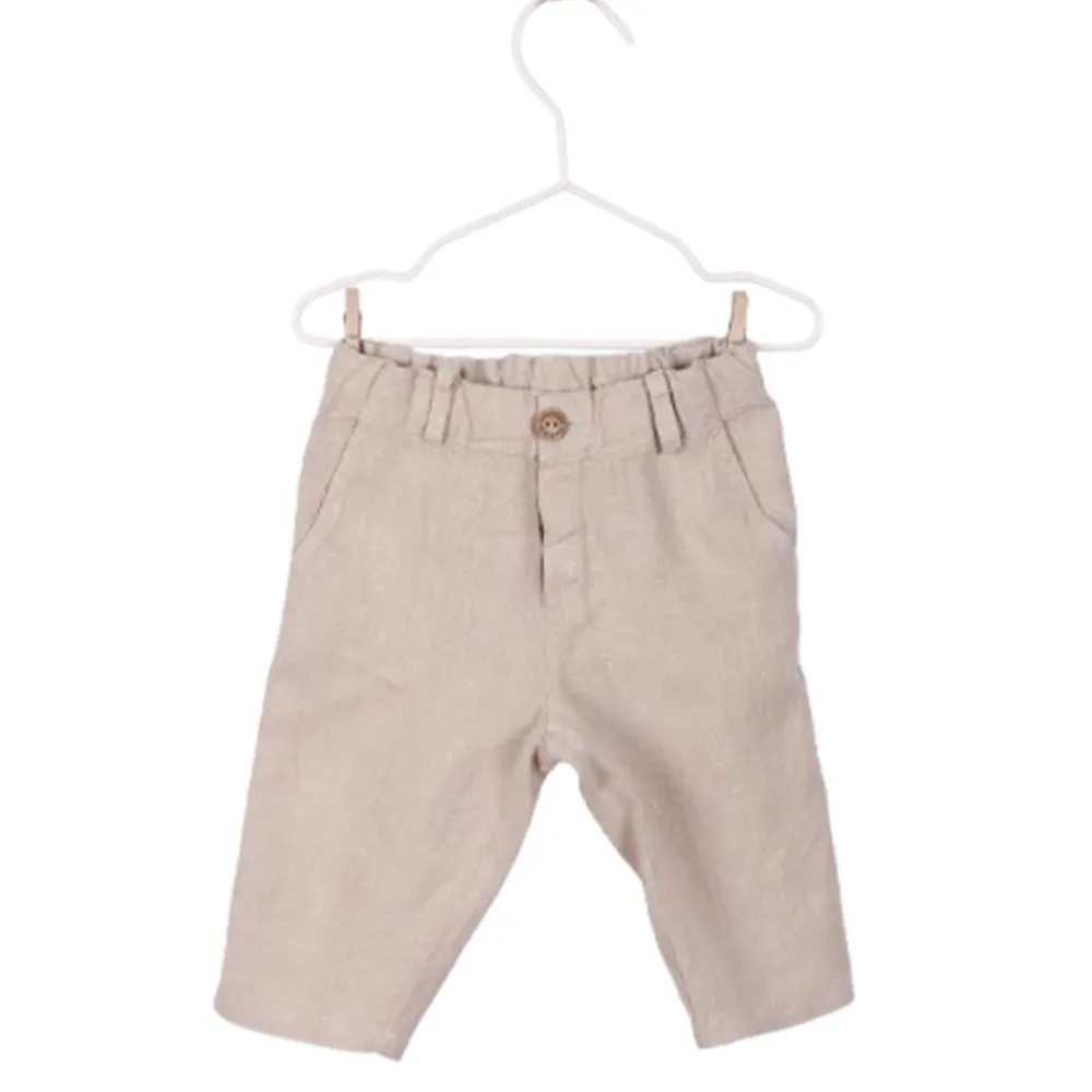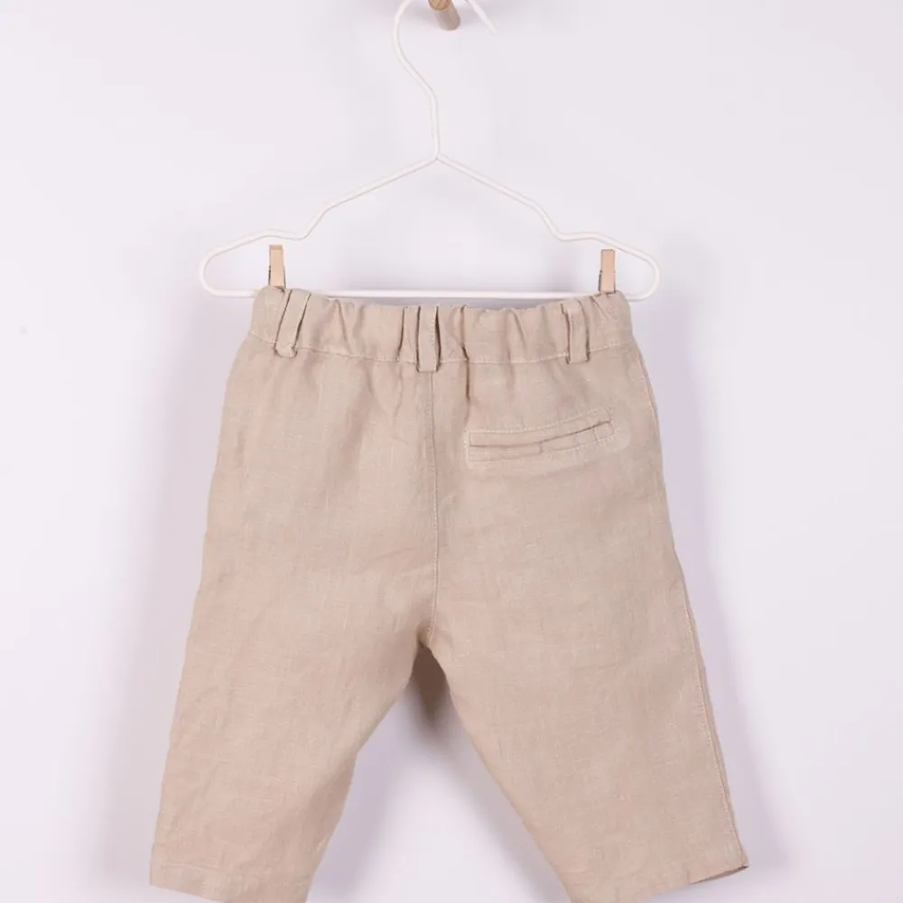 Stilig og lett bukse laget i myk, pustende lin og passer ypperlig til festlige anledninger. Buksen lukkes med en dekorativ treknapp foran og har justerbar midje for ekstra god passform og komfort.