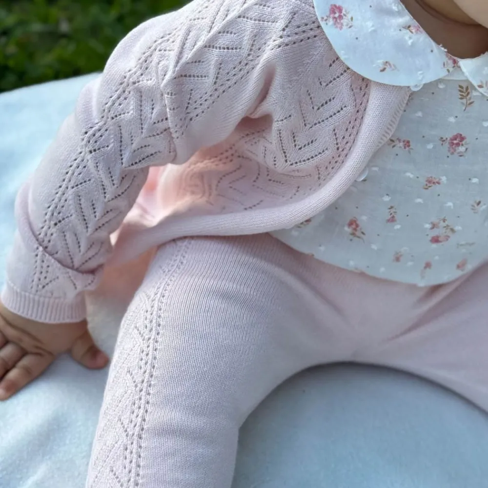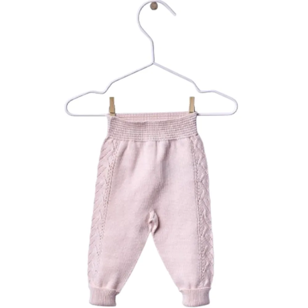 Strikket bukse i finmasket, pustende og økologisk bomull. Buksen har vakre strukturdetaljer langs sidene og en myk, elastisk linning som gir god passform uten å stramme. Produsert med Wholegarment-teknologi – ett sømløst plagg som gir maksimal komfort og bevegelsesfrihet for barnet.