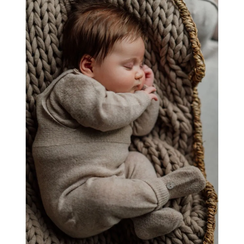 Myk romper i en eksklusiv blanding av merinoull og kasjmir. LITTLE LOVE-romperen er designet for maksimal komfort og brukervennlighet, med fine perlemorsknapper på selene og trykknapper mellom bena for enkel skifting. Produsert med innovativ Wholegarment-teknologi, er plagget helt uten sømmer – noe som gir en ekstra myk og behagelig opplevelse for babyens sensitive hud.