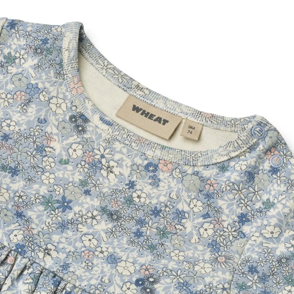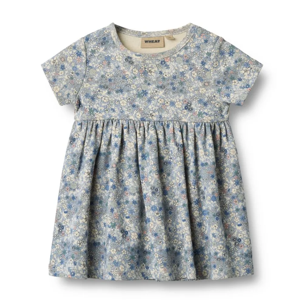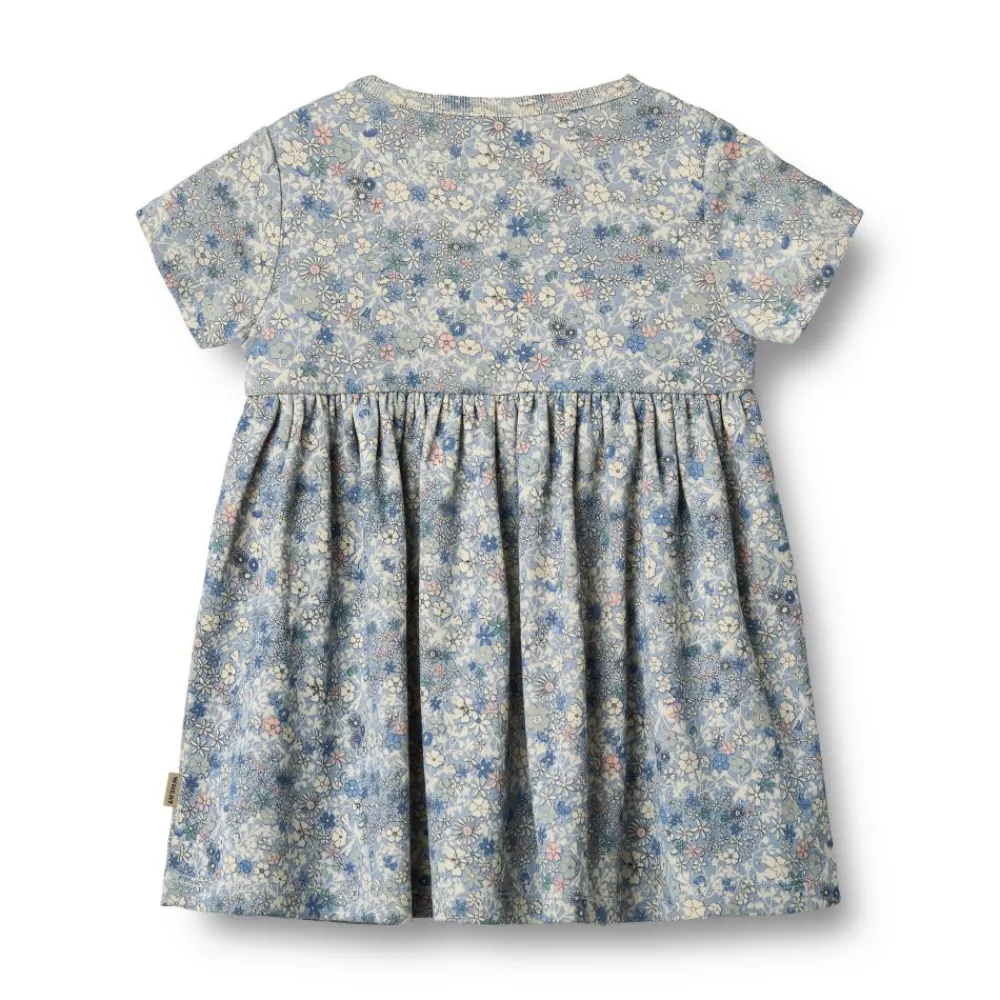 Kortermet jerseykjole med trykk i myk økologisk bomull. Kjole har en løs passform, som gjør den enkle og behagelig for babyen din å ha på seg. Kjolen har en flatterende snitt med rynker, som gir kjolen litt herlig volum. Den har trykknapper på skulderen for å gjøre det lettere for deg å kle på babyen.