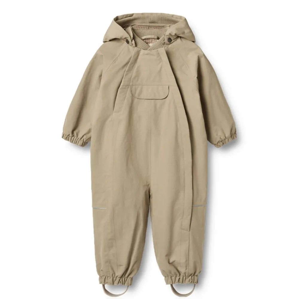 Wheats tekniske dress er pustende, slitesterke og vind- og vanntett for å sikre at barnet ditt holder seg tørt og komfortabelt. Dressen er ment som en overgangsdress til våren når temperaturen begynner å stige, og du kan begynne å bruke lettere yttertøy. Dressen har mange praktiske detaljer som ribbekrage, avtakbar og justerbar hette, brystlomme og elastisk rynking bak, samt strikk rundt håndledd og benkanter. Den har også justerbare gummifotstropper.