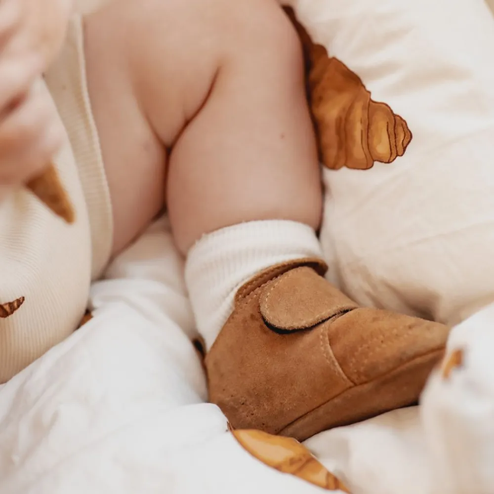 Aldri mer tapte sko. Med babysko fra Petit La Busch er du sikret at begge sko alltid blir med hjem igjen. Bruk de i babystolen, eller i din vognpose, eller til bruk inne i huset. Barn har behov for å kunne sanse og oppleve omgivelsene sine, og det gir disse fine babyskoene dem muligheten til. Det tynne 2-3 mm laget med semsket skinn, samt et fotformet design uten stiv og tykk gummisåle, gir mulighet for at langt flere sanseinntrykk kan oppfattes gjennom barnets føtter.