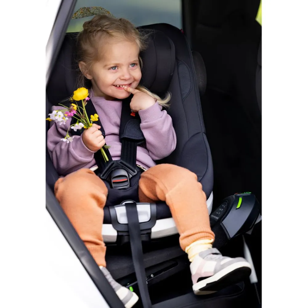 Verdens første bilstol med rotasjonsfunksjon godkjent helt til 6 år. Ekstra komfortabel med mulighet for å lene stolen tilbake flere hakk, og justerbar benplass. Forleng tiden du kan sikre barnet ditt bakovervendt i bilen, 5 ganger så trygt sammenliknet med forovervendt. Stolen roteres mot døren så det er enkelt å hjelpe barnet inn og ut av bilen. Lav vekt gjør det enkelt å bære stolen ved behov. Bestått Plus-testen.