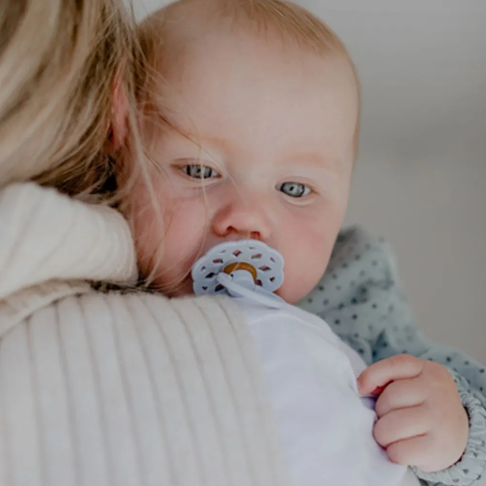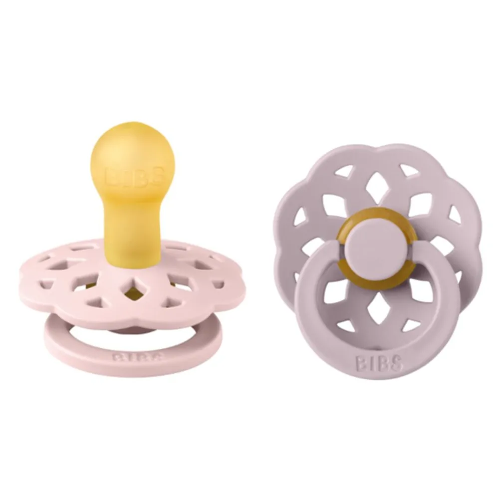 BIBS Boheme-smokker er inspirert av den moderne bohemstilen og laget av naturgummilatex, designet for å støtte naturlig amming. Brystvorten er utstyrt med en ventil som slipper ut luft når babyen lukker seg på brystvorten og dermed flater ut brystvorten til å forme seg naturlig etter babyens munnhule. Det runde lettvektsskjoldet vender bort fra den sensitive og sarte huden rundt babyens munn for å sikre minimal kontakt med babyens nese og munn, noe som betyr mindre sjanse for fuktighetsoppbygging fra spytt som kan forårsake utslett og såre flekker.