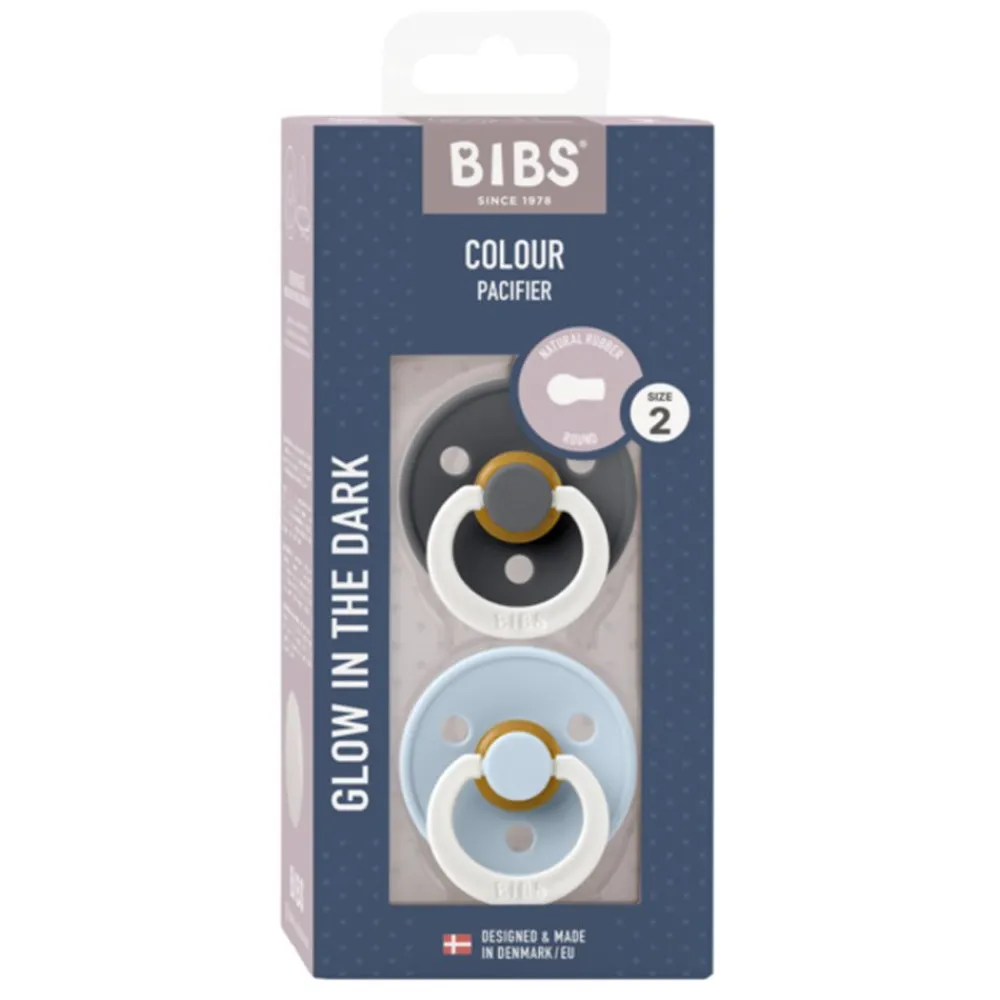 Søte BIBS smokker produsert av naturgummilatex og som lyser i mørket. Brystvorten er utstyrt med en ventil som slipper ut luft når babyen lukker seg på brystvorten og dermed flater ut brystvorten til å forme seg naturlig etter babyens munnhule. Det runde lettvektsskjoldet vender bort fra den sensitive og sarte huden rundt babyens munn for å sikre minimal kontakt med babyens nese og munn, noe som betyr mindre sjanse for fuktighetsoppbygging fra spytt som kan forårsake utslett og såre flekker.