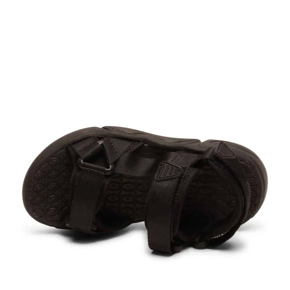 Åpen og lett sandal som gir luft til tærne. Sandalen er laget av pustende materiale med myke og behagelige tekstilstropper. Den justerbare borrelåsen sikrer en naturlig passform og en enkel lukking for barn i alle aldre.