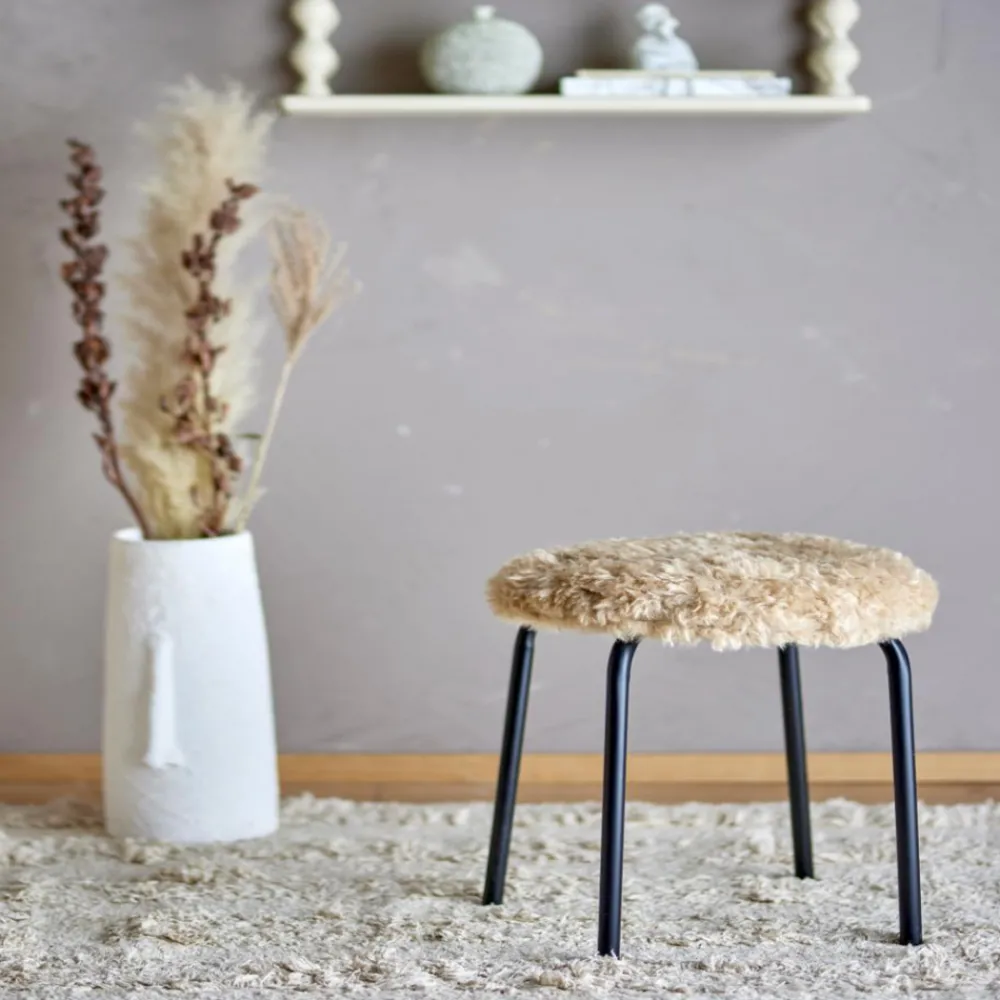 Linard krakken kombinerer dekor og funksjon med sitt myke, pelslignende sete i varm brunfarge. De slanke, svarte metallbena gir en moderne kontrast og sørger for stabilitet. Perfekt som et innbydende innslag i gangen, som ekstra sitteplass i stuen eller som et dekorativt element i hjemmet.